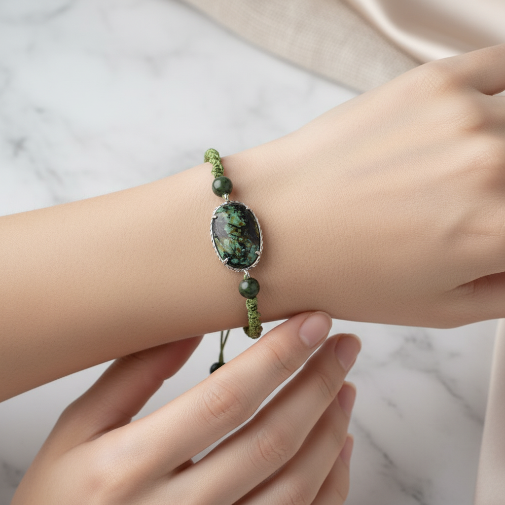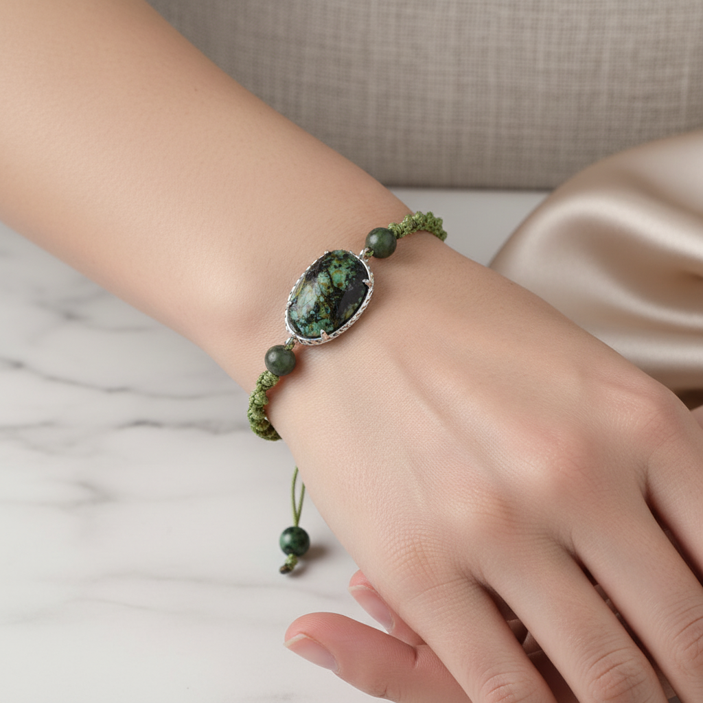 Afrika Turkuaz – Yeşim Doğal Taş Makrome Bileklik – Özel Tasarım