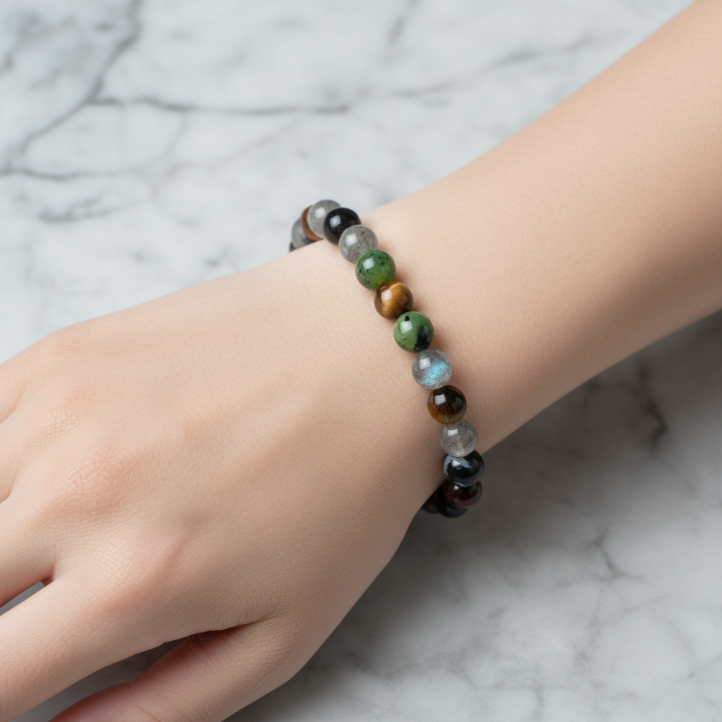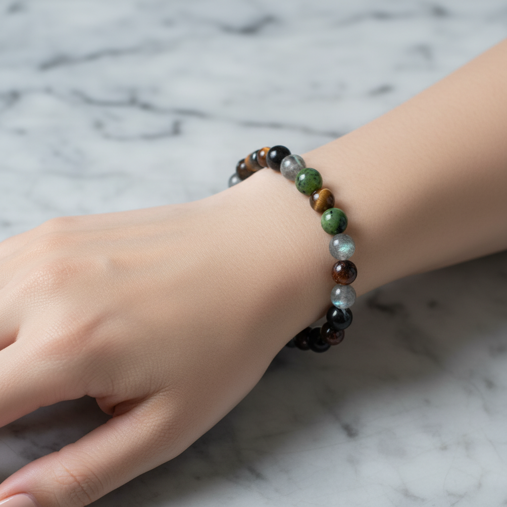 Akrep Burcu Doğal Taş Bileklik – Granat Lal, Golden Obsidyen, Kaplan Gözü, Labradorit & Yeşim