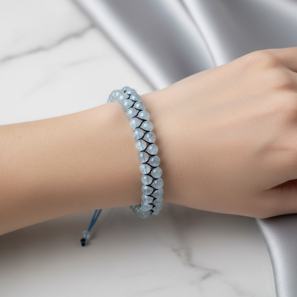 Akuamarin 4 mm Çift Sıra Doğal Taş Bileklik – Unisex El İşçiliği