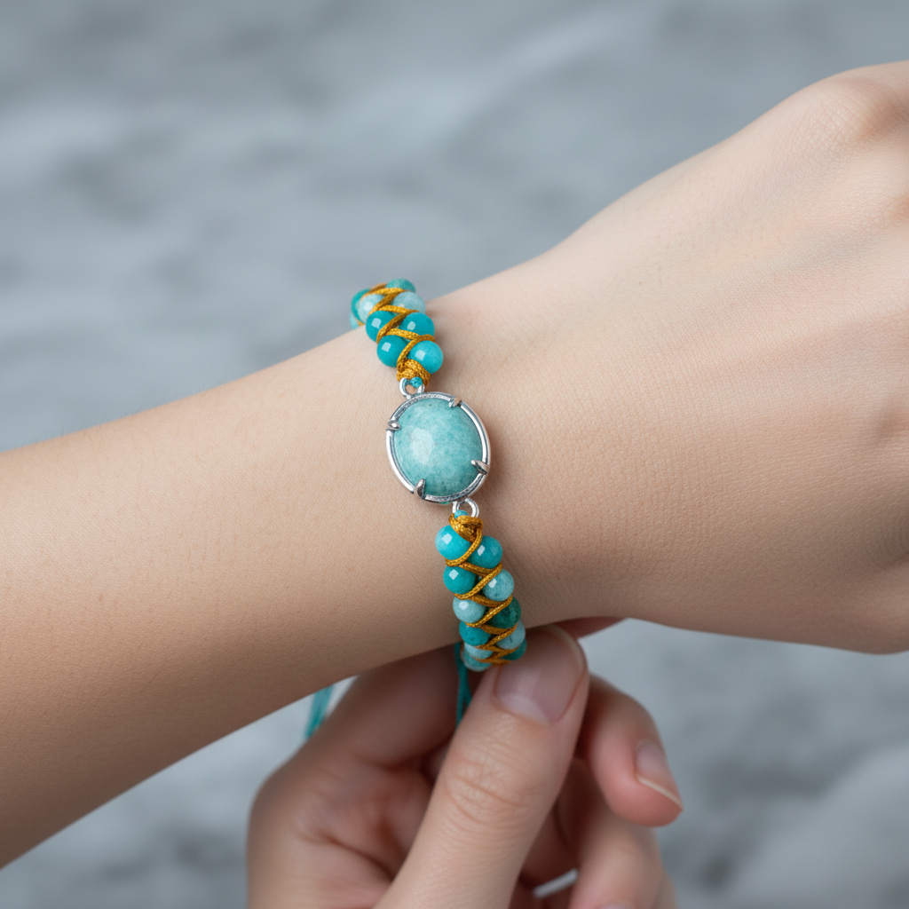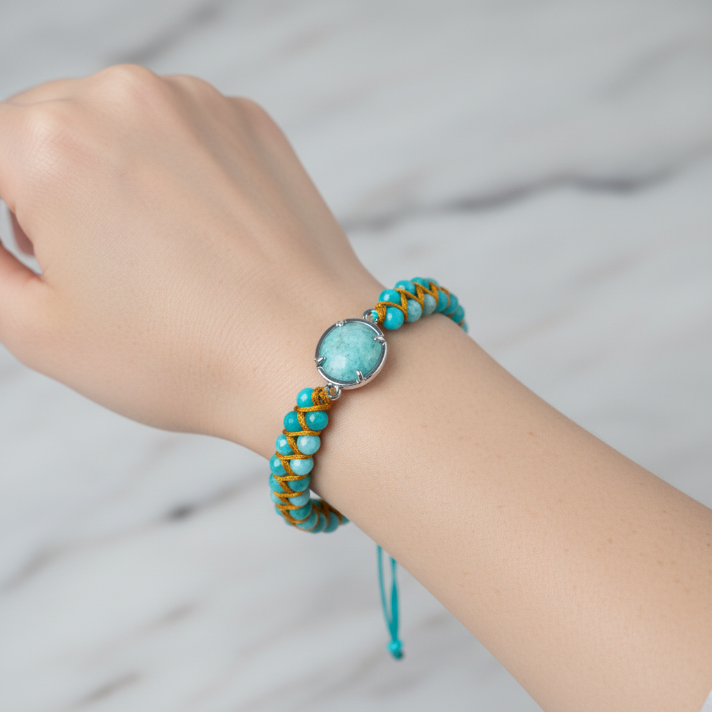 Amazonit Doğal Taş Makrome Bileklik – Özel Tasarım