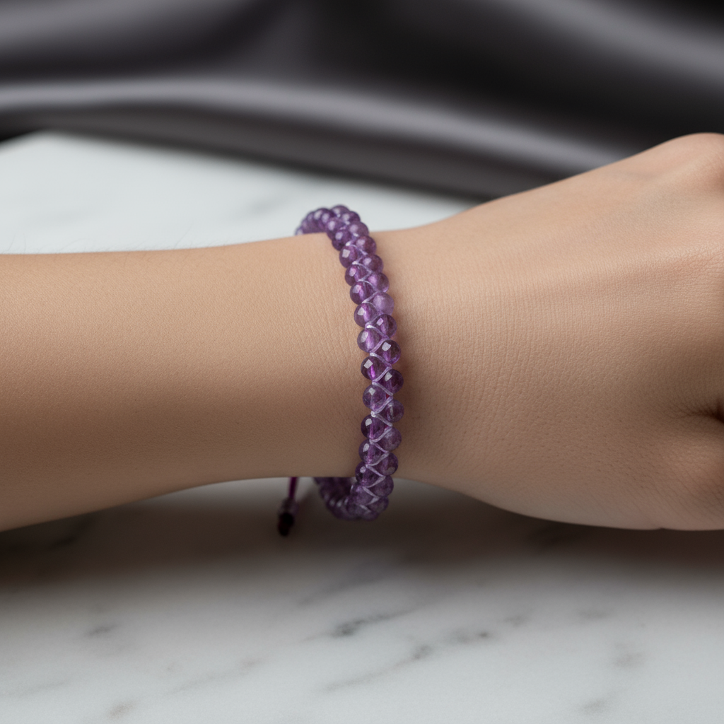 Ametist 3-4 mm Çift Sıra Doğal Taş Bileklik – Unisex El İşçiliği