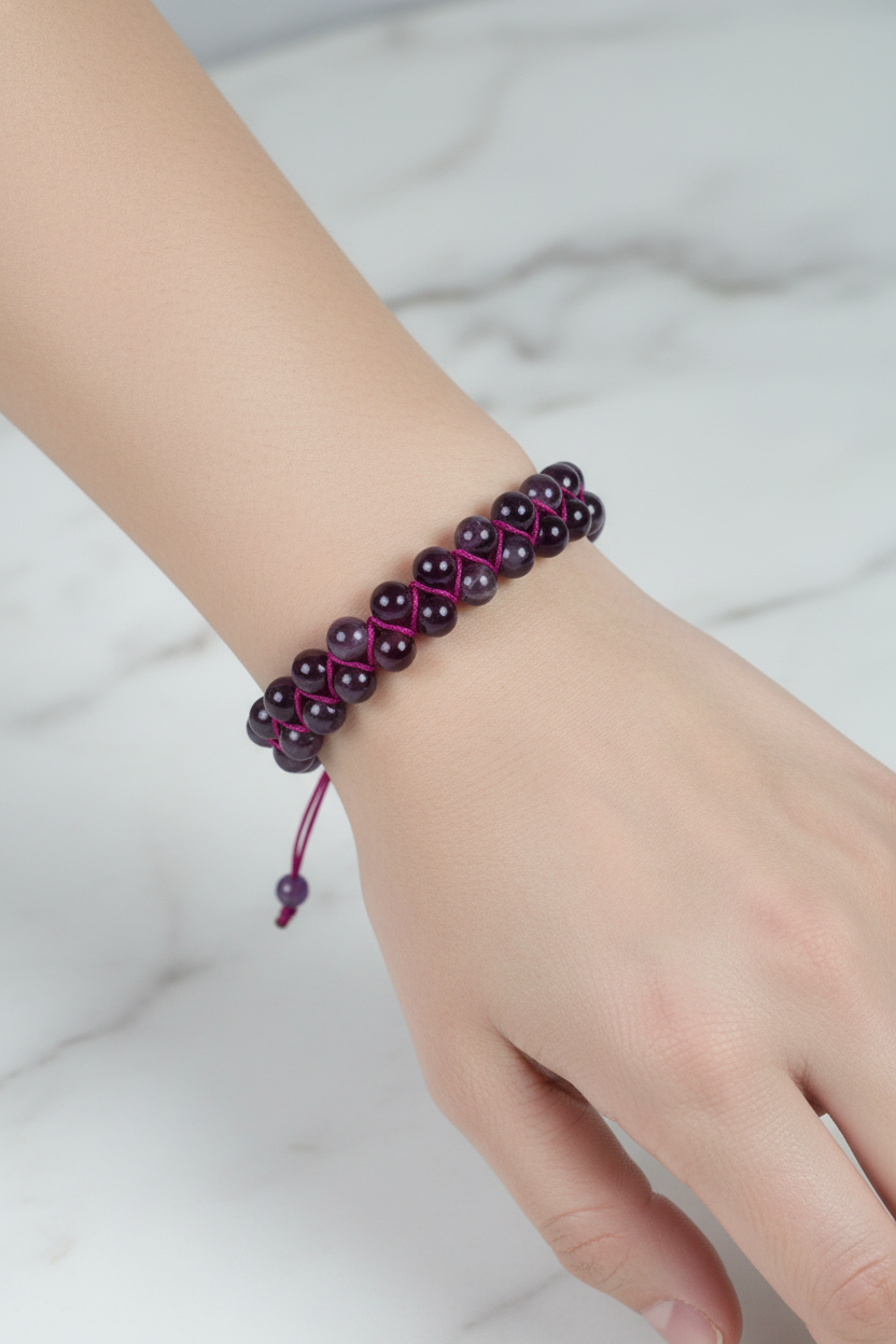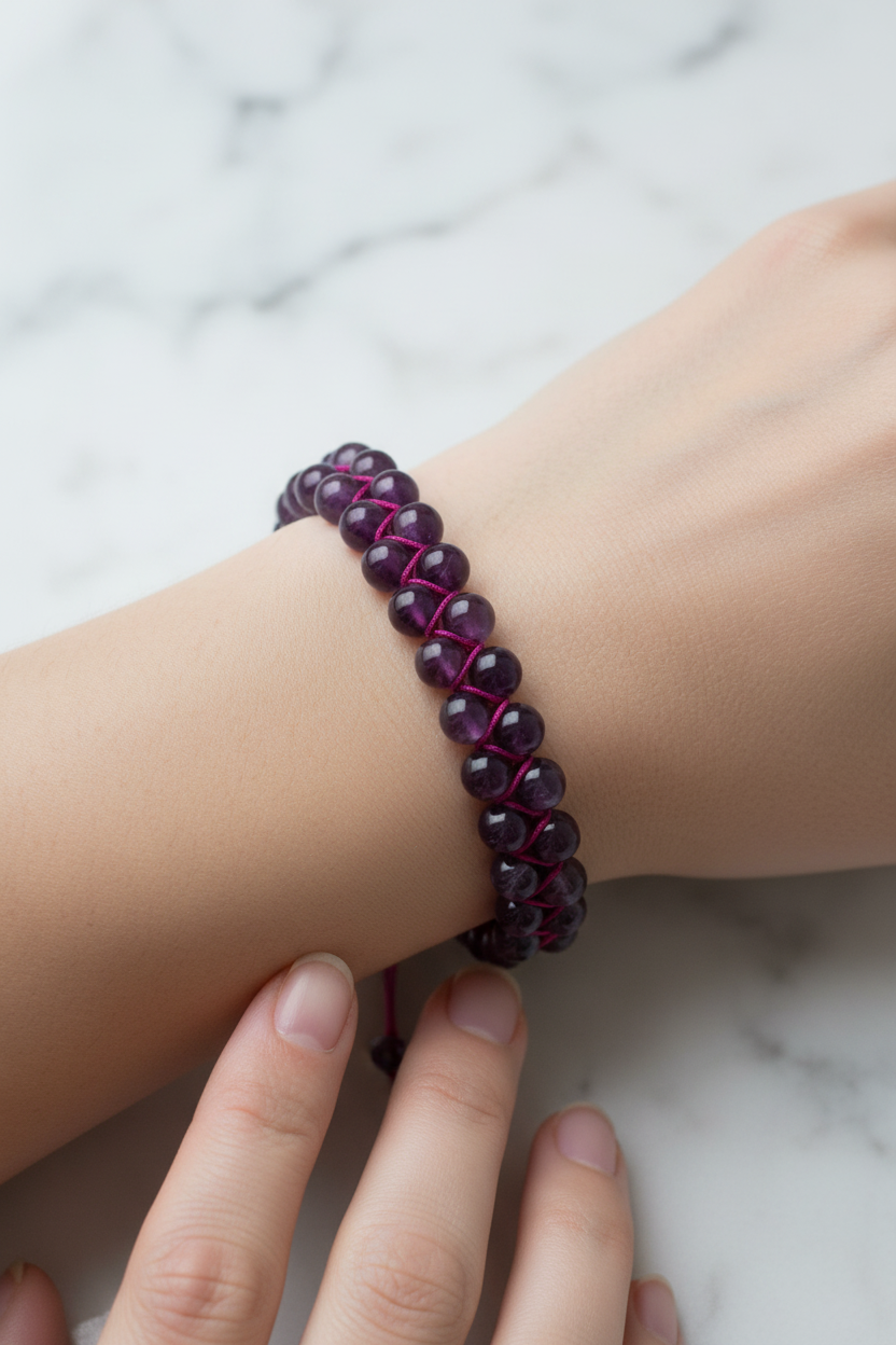 Morun asil tonlarını yansıtan Ametist 8mm Çift Sıra Makrome Doğal Taş Bileklik, zarif ve modern tasarımıyla bilekte dikkat çekici bir şıklık sunar. 8mm çapındaki doğal ametist taşları çift sıra halinde dizilmiş, el yapımı makrome örgü ile hazırlanmıştır. Günlük kombinlerde sofistike bir detay, özel davetlerde ise iddialı bir tamamlayıcı aksesuar olarak tercih edilebilir.
