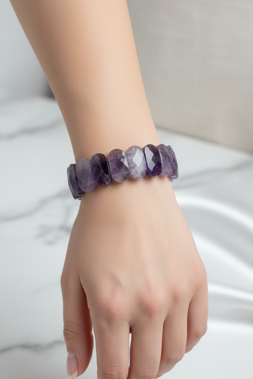 Ametist Doğal Taş Geniş Kesim Bileklik – Zarif & Modern Tasarım