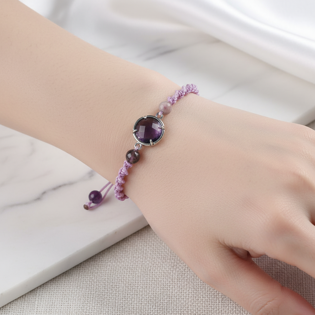 Ametist Doğal Taş Makrome Bileklik – Özel Tasarım