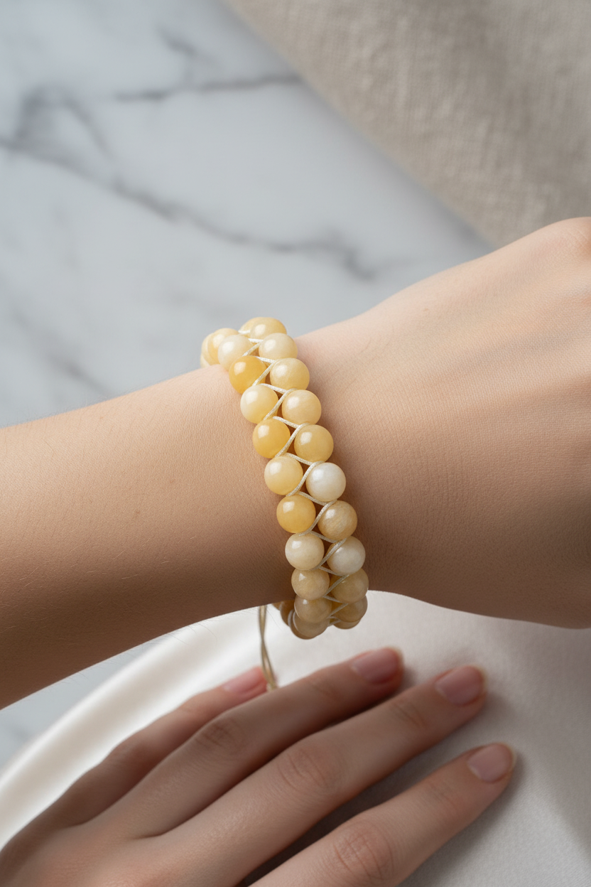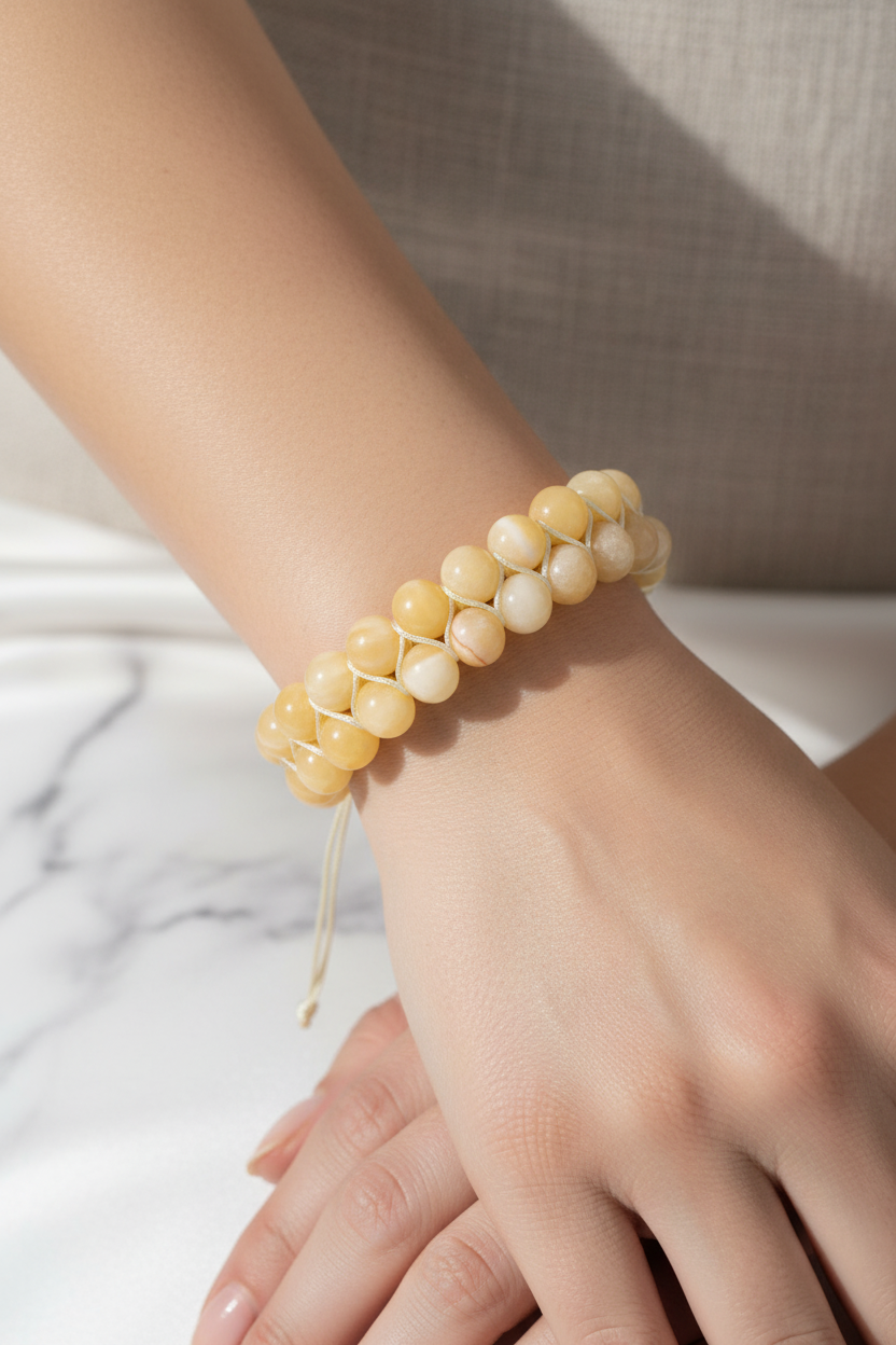 Aragonit 8mm Çift Sıra Makrome Doğal Taş Bileklik