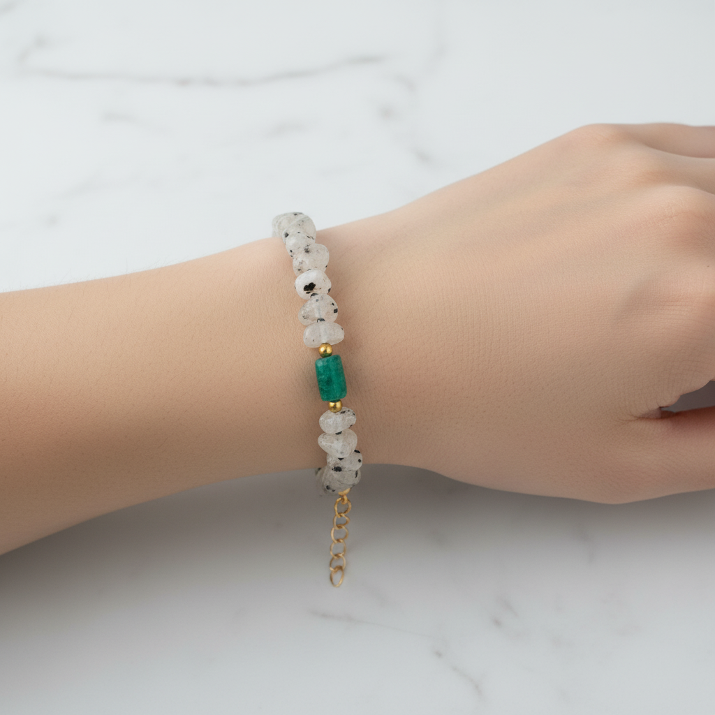 Ay Taşı & Amazonit Doğal Taş Bileklik – Özel Tasarım