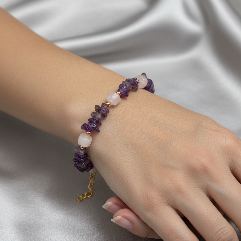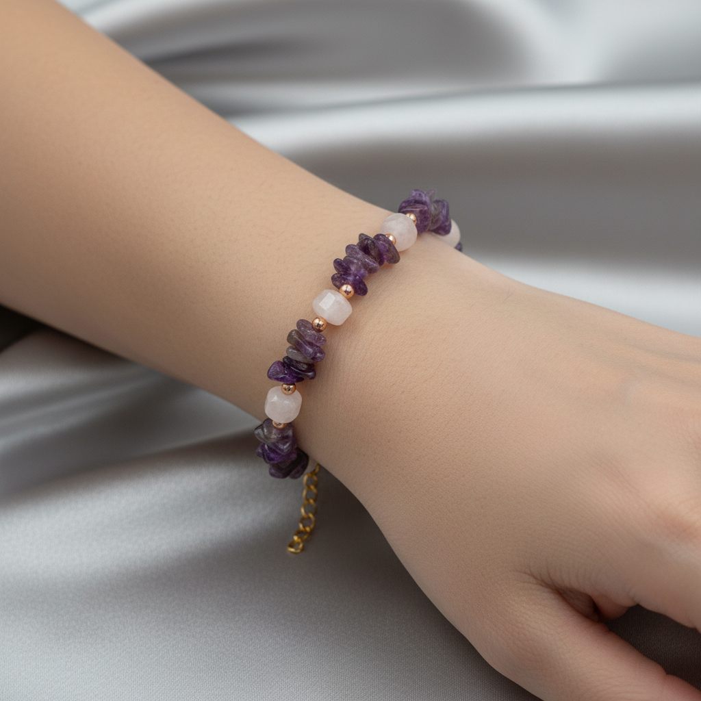 Ay Taşı & Ametist Doğal Taş Altın Kaplama Bileklik – Özel Tasarım