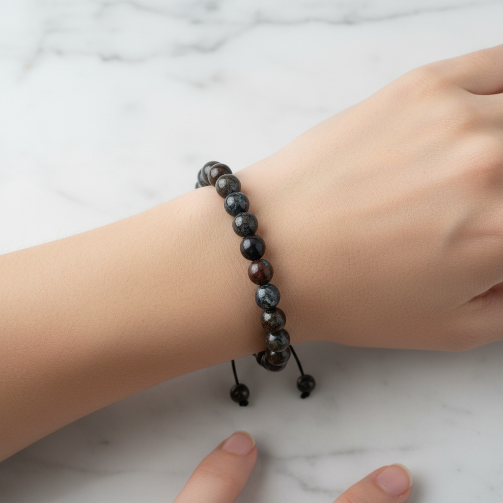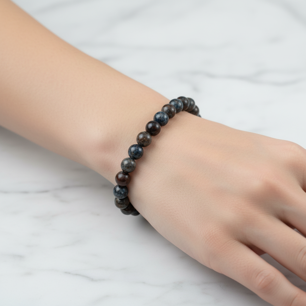 Azurit 8 mm Merdiven Kapama Doğal Taş Bileklik – El İşçiliği