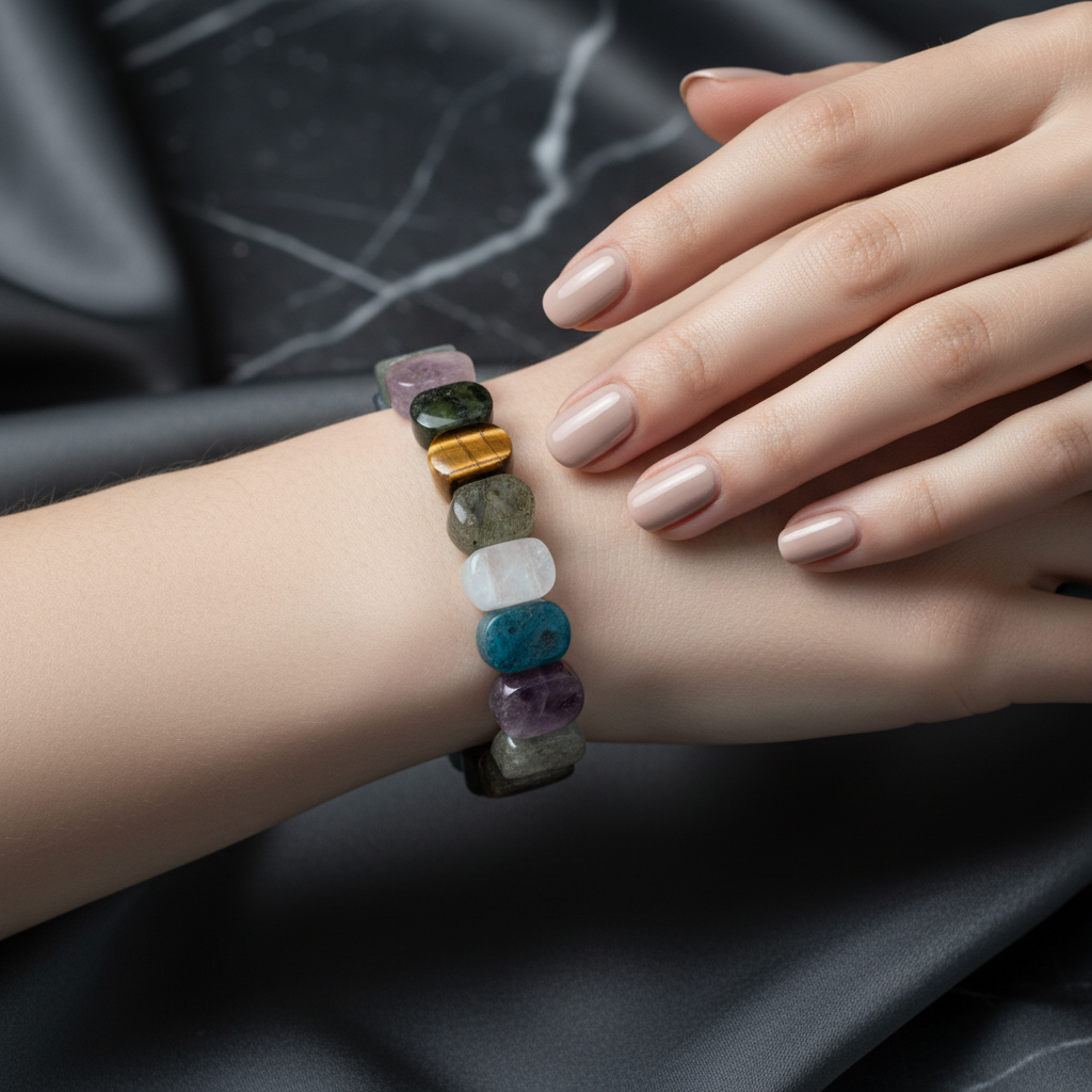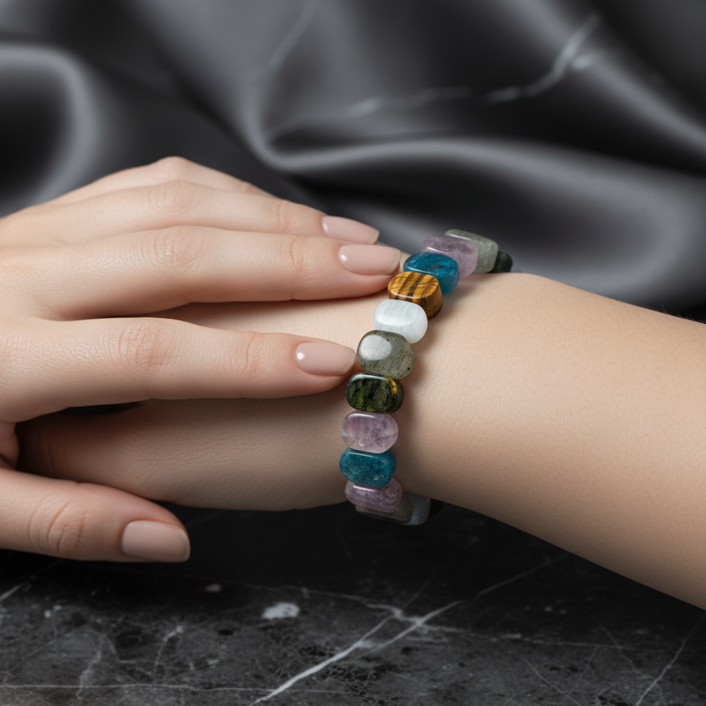 Balık Burcu Doğal Taş Bileklik – Akuamarin, Ametist, Kaplan Gözü, Labradorit, Mavi Apatit, Pembe Kuvars & Yeşim
