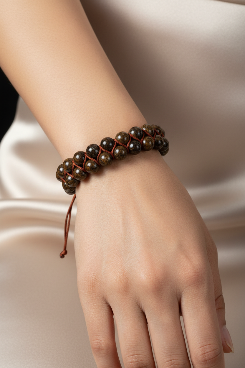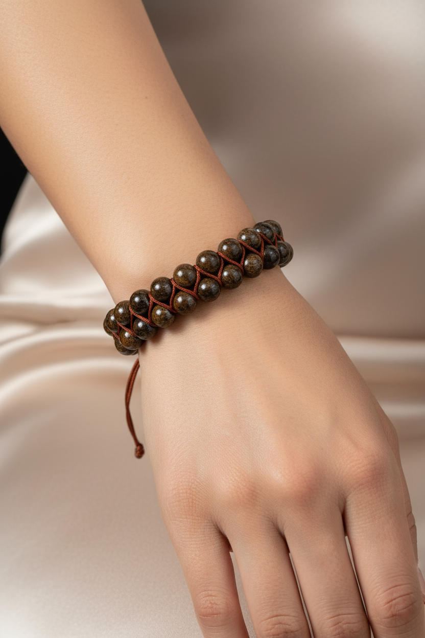 Bronzit 8mm Çift Sıra Makrome Doğal Taş Bileklik
