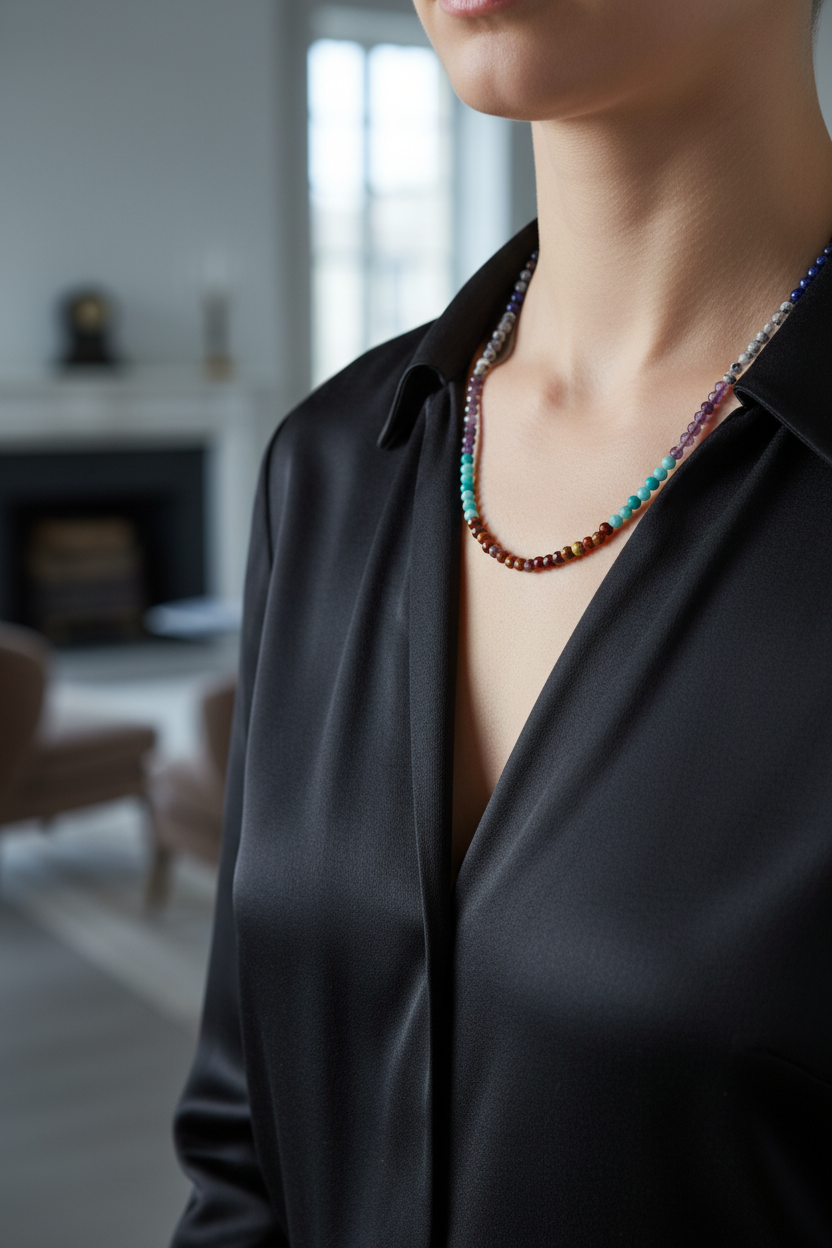 Amazonit, Ametist, Jasper, Karnelyan Akik & Lapis Lazuli Doğal Taş Kolye – Özel Tasarım