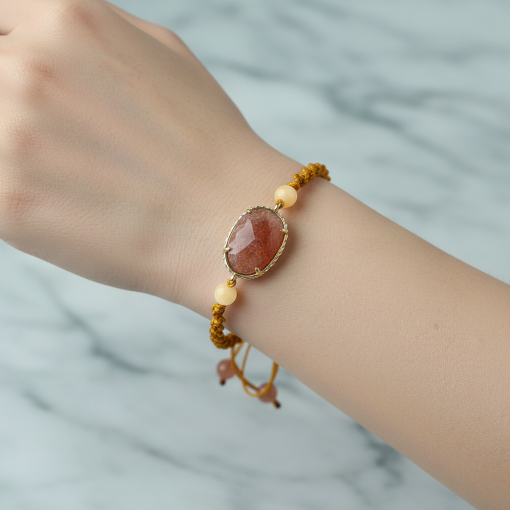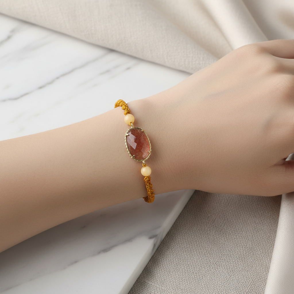 Çilek Kuvars – Kalsit Doğal Taş Makrome Bileklik – Özel Tasarım