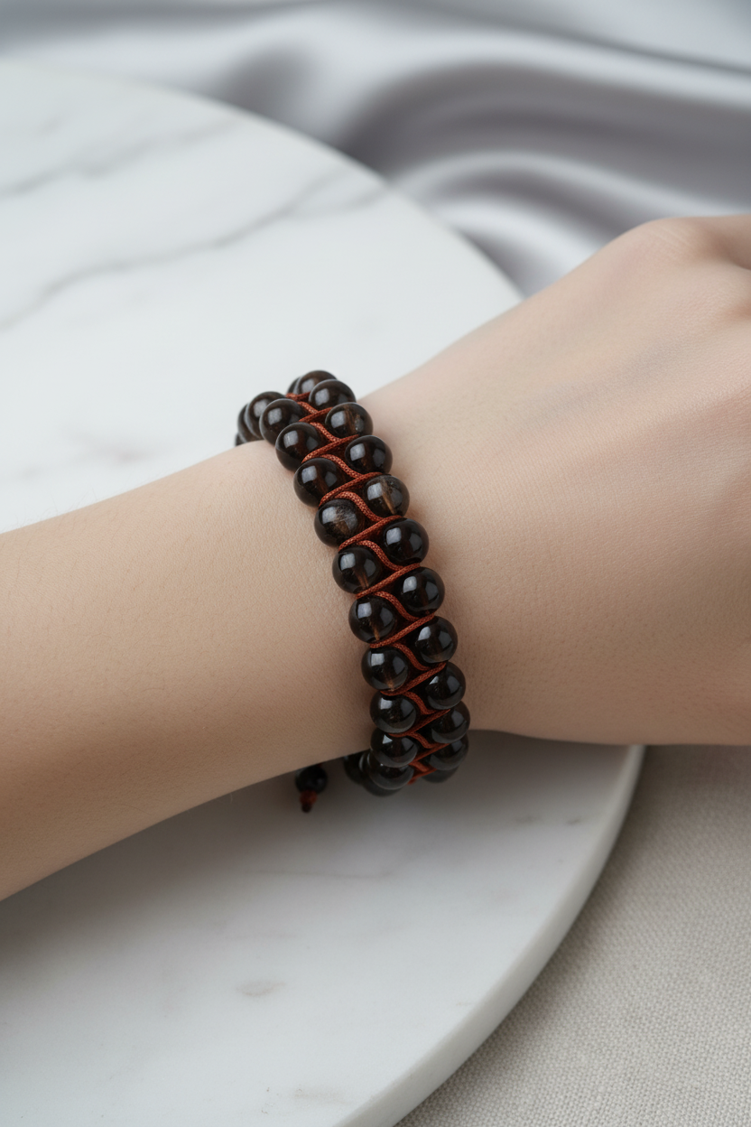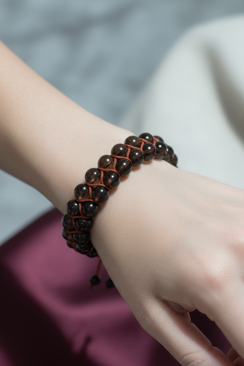 Dumanlı Kuvars 8mm Çift Sıra Makrome Doğal Taş Bileklik