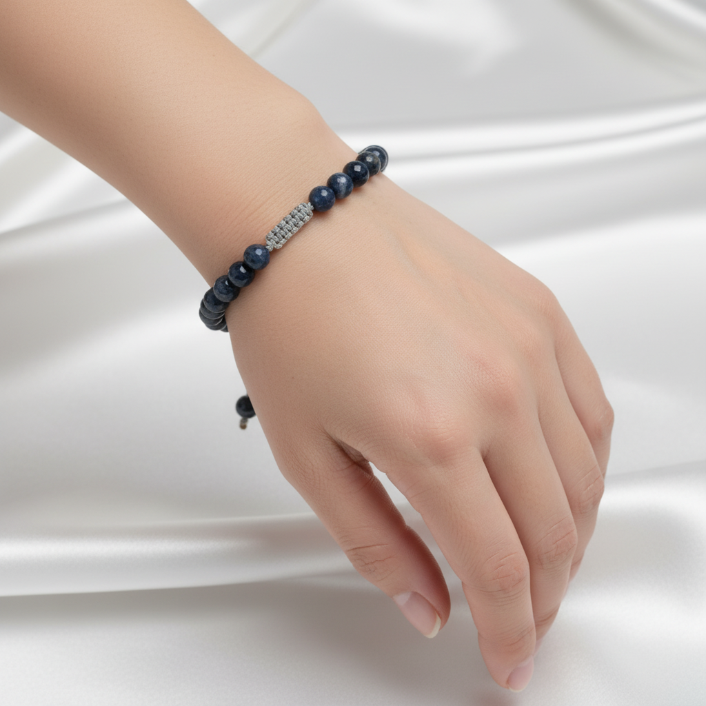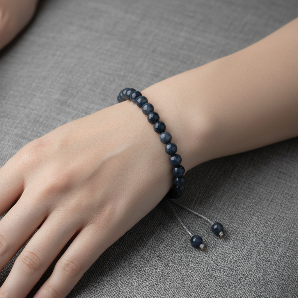 Dumortierit 6 mm Merdiven Kapama Doğal Taş Bileklik – El İşçiliği