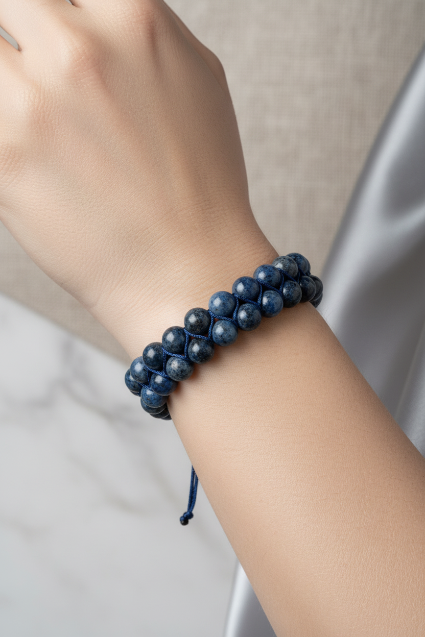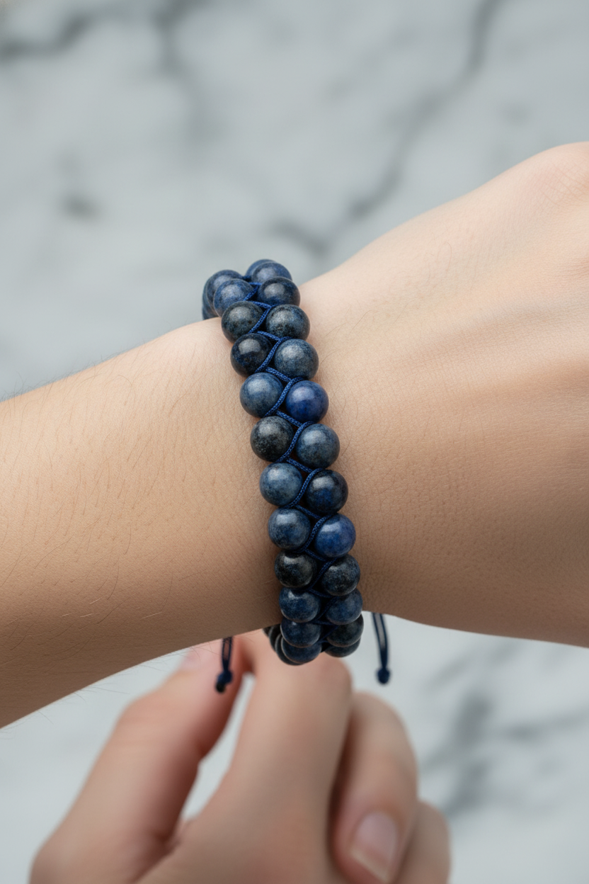 Dumortierit 8mm Çift Sıra Makrome Doğal Taş Bileklik