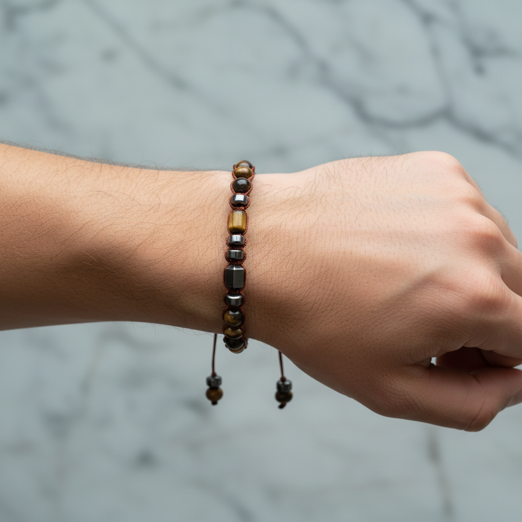 Her taşın doğal yapısı nedeniyle her bileklik benzersizdir. Erkeklere özel tasarlanmış bu bileklik, güçlü ve zarif bir görünüm isteyenler için ideal seçimdir.