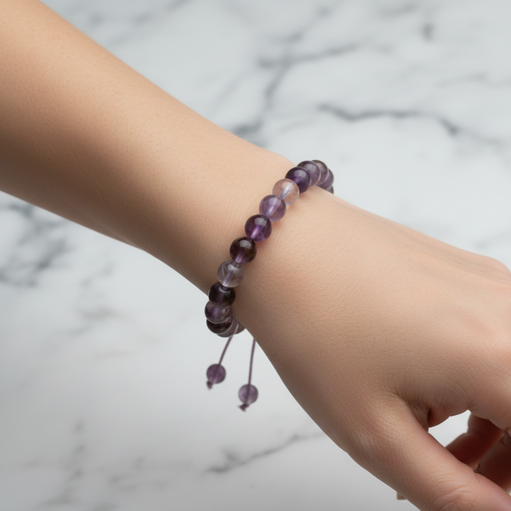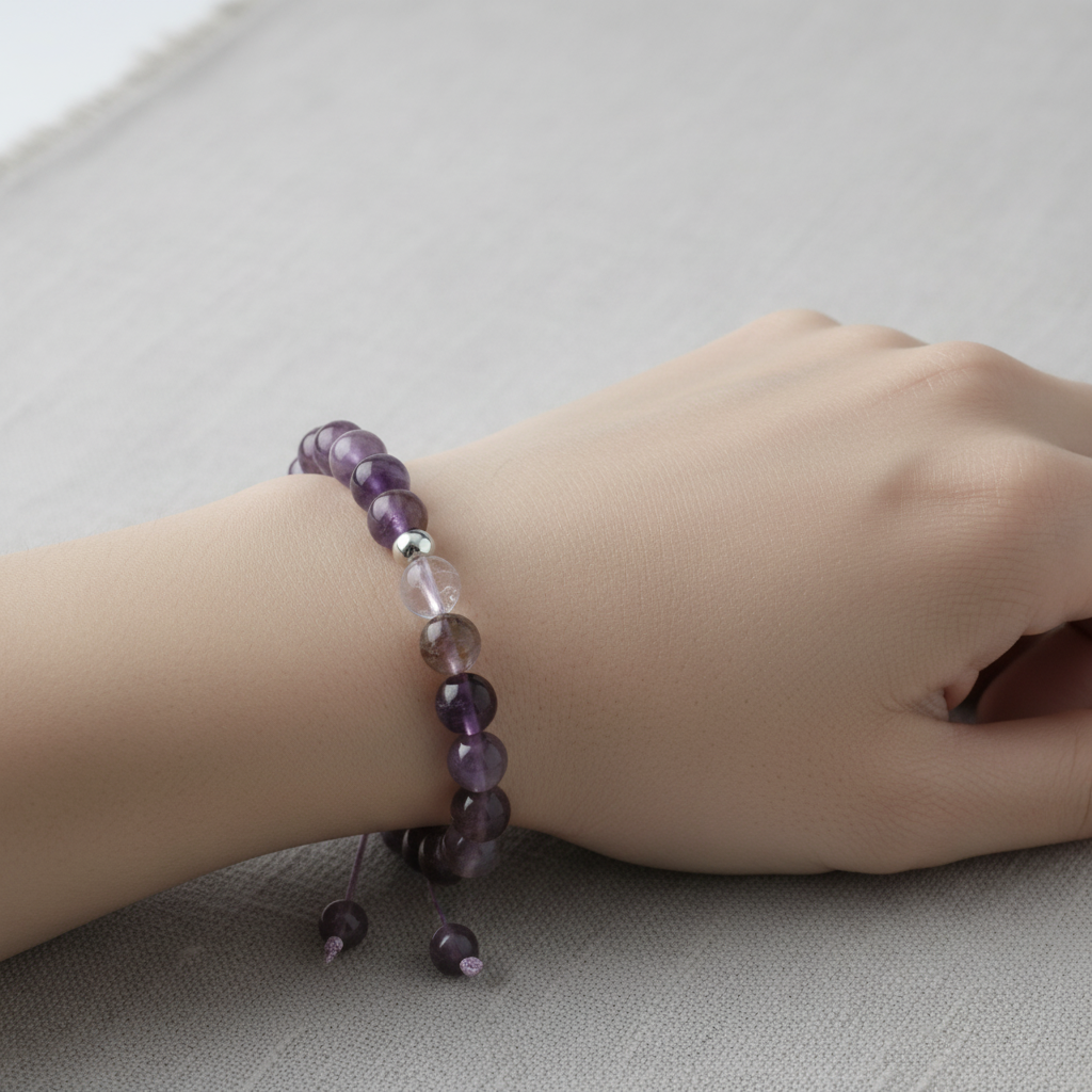 Fantom Kuvars 8 mm Merdiven Kapama Doğal Taş Bileklik – El İşçiliği