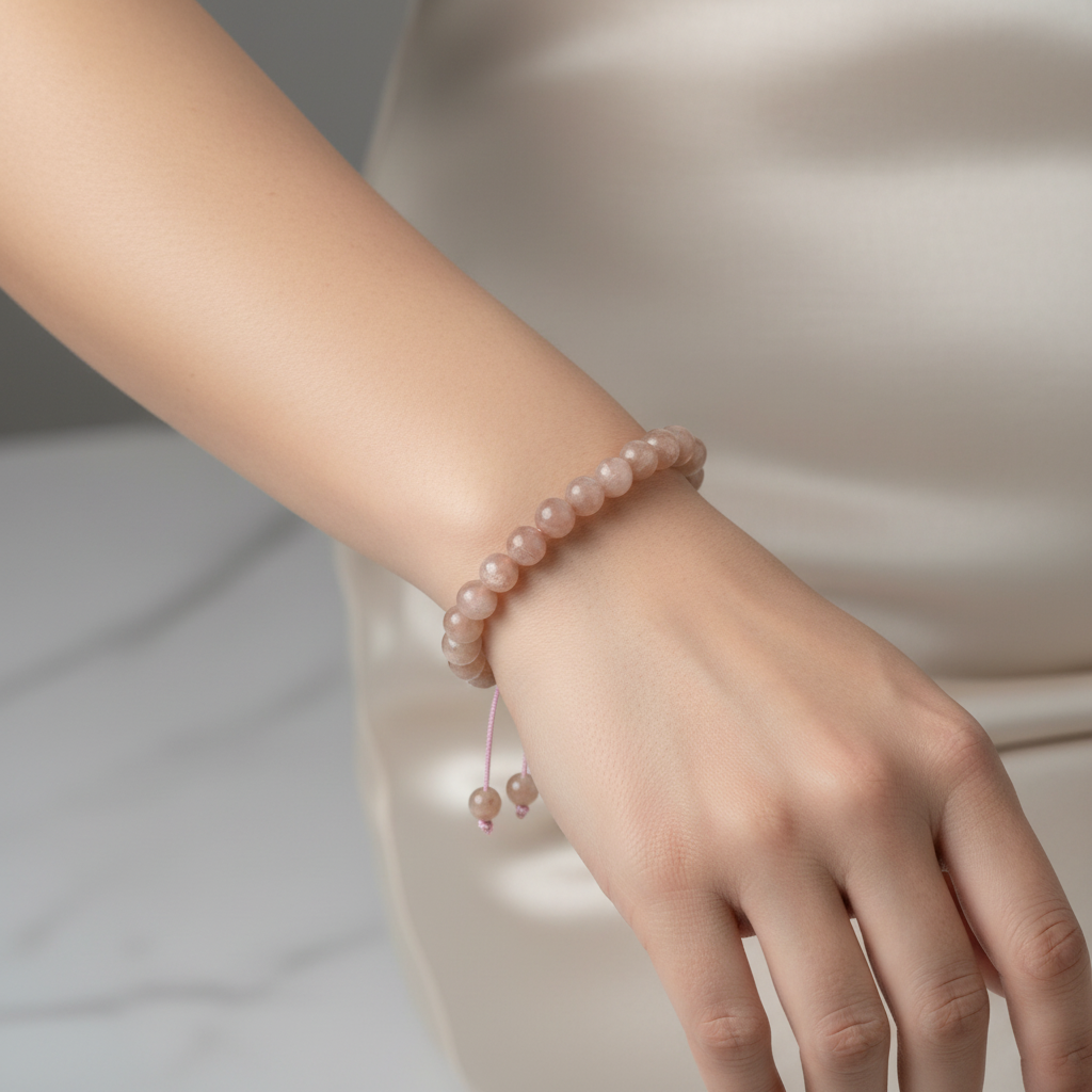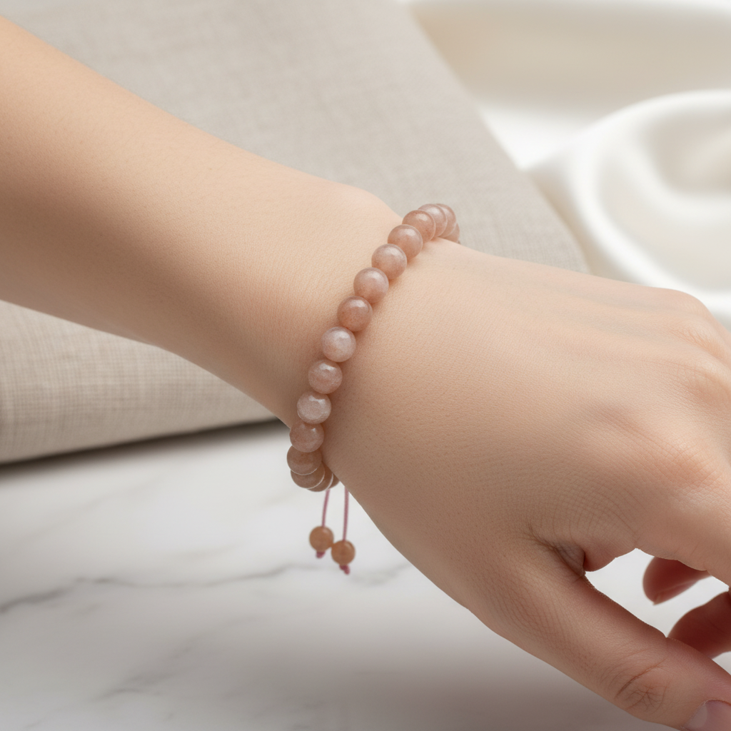 Güneş Taşı 8 mm Merdiven Kapama Doğal Taş Bileklik – El İşçiliği