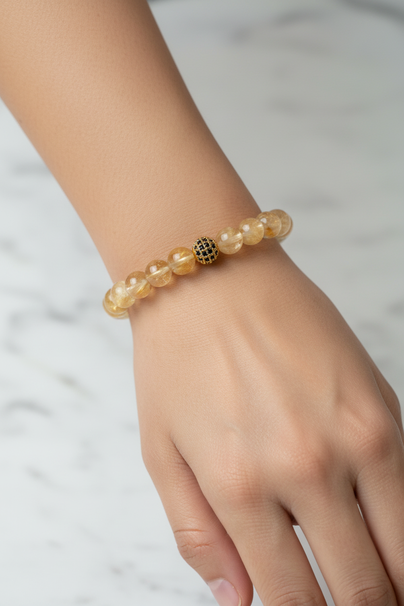 Sitrin Doğal Taş Bileklik – Zirkon Aparatlı 8 mm Özel Tasarım