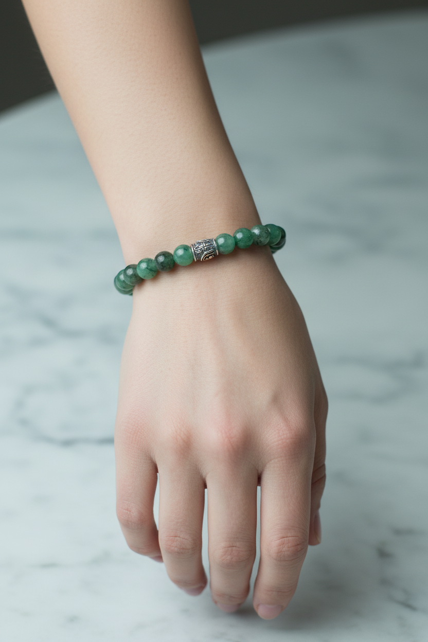 Zümrüt Doğal Taş Bileklik – Gümüş Aparatlı, 6 mm Misinalı, Unisex Tasarım