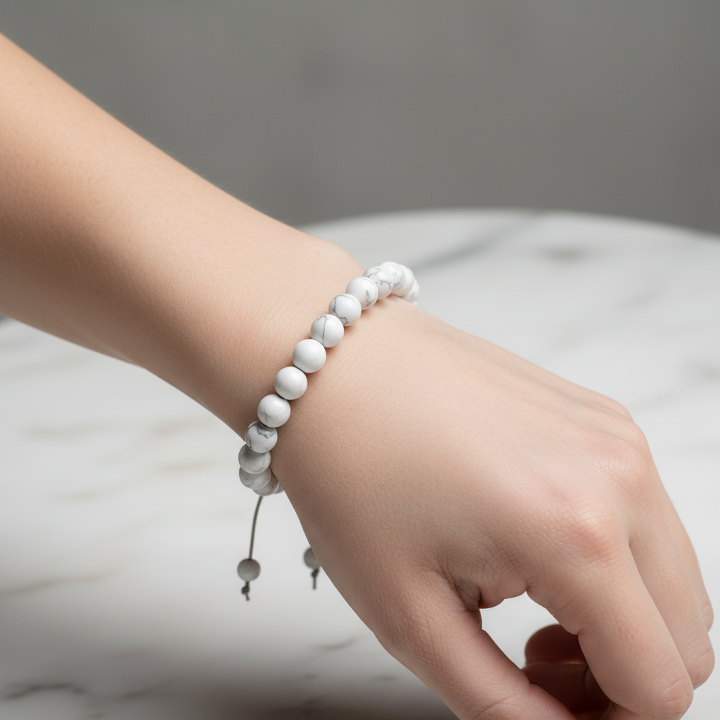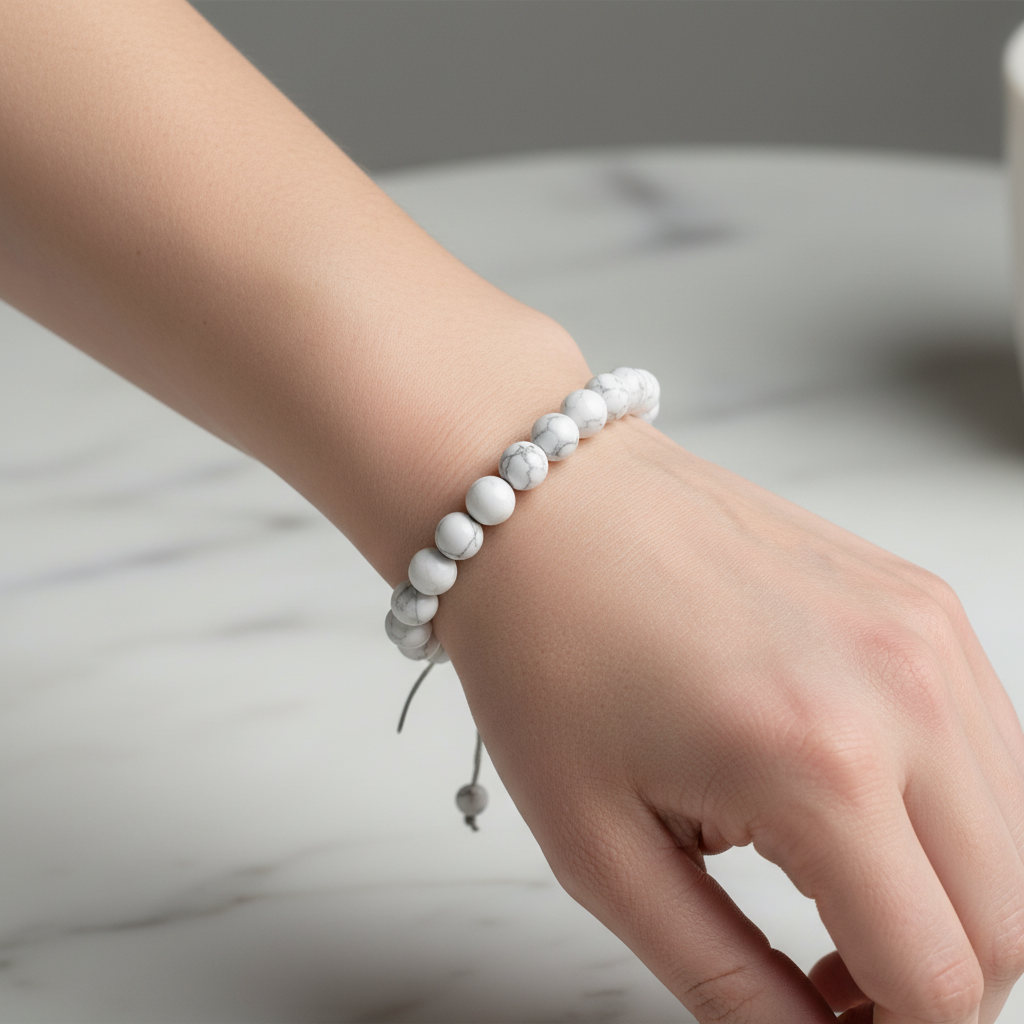 Havlit 8 mm Merdiven Kapama Doğal Taş Bileklik, doğal taşların beyaz zemin üzerindeki gri damarlarını modern tasarımla buluşturan özel bir aksesuardır. 8 mm ölçüsündeki havlit boncuklar özenle dizilmiş, merdiven kapama detayıyla bileklikte hem estetik hem de sağlam bir görünüm kazanmıştır. El işçiliğiyle hazırlanan bu bileklik, günlük kullanımda sade bir şıklık, özel günlerde ise sofistike bir tamamlayıcı aksesuar olarak öne çıkar.