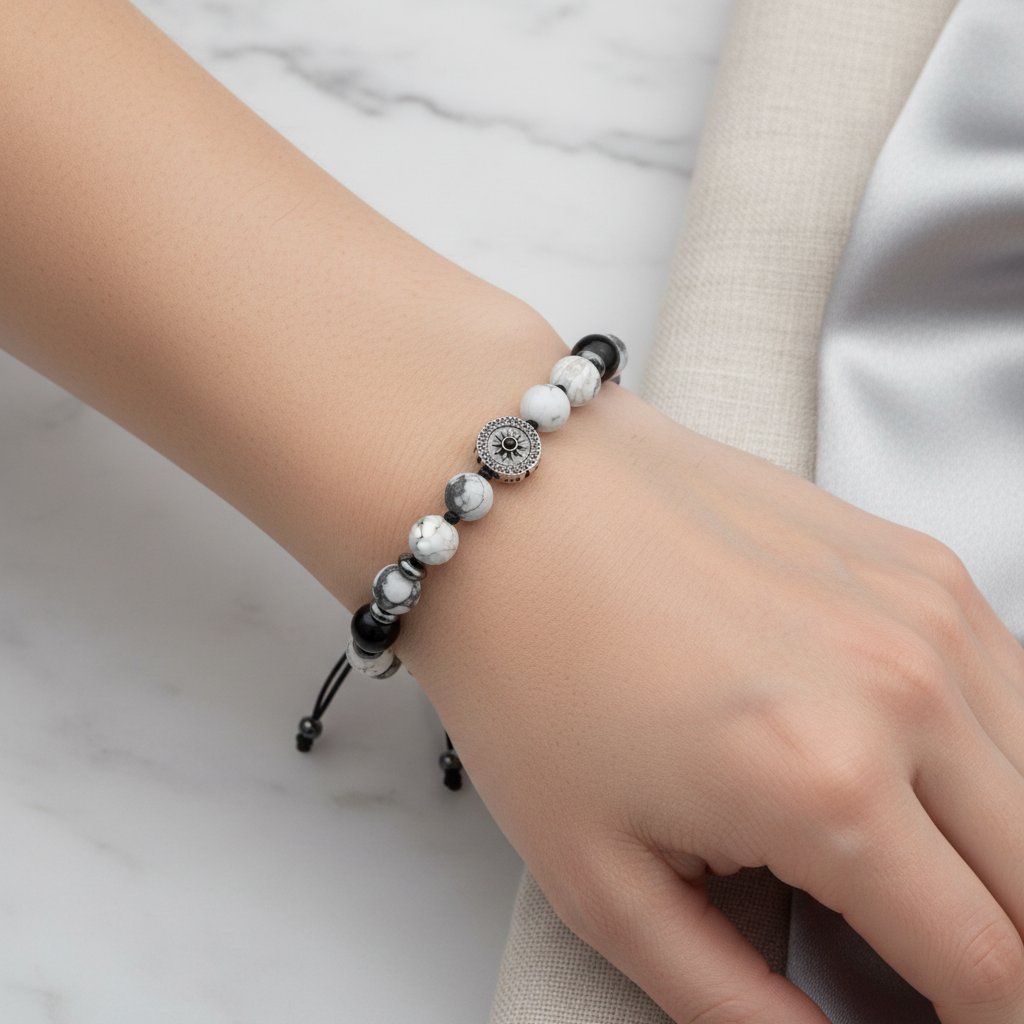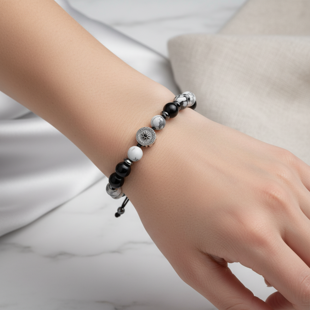 Havlit, Siyah Turmalin & Hematit Doğal Taş 925 Ayar Gümüş Tasarım Bileklik – Özel Tasarım