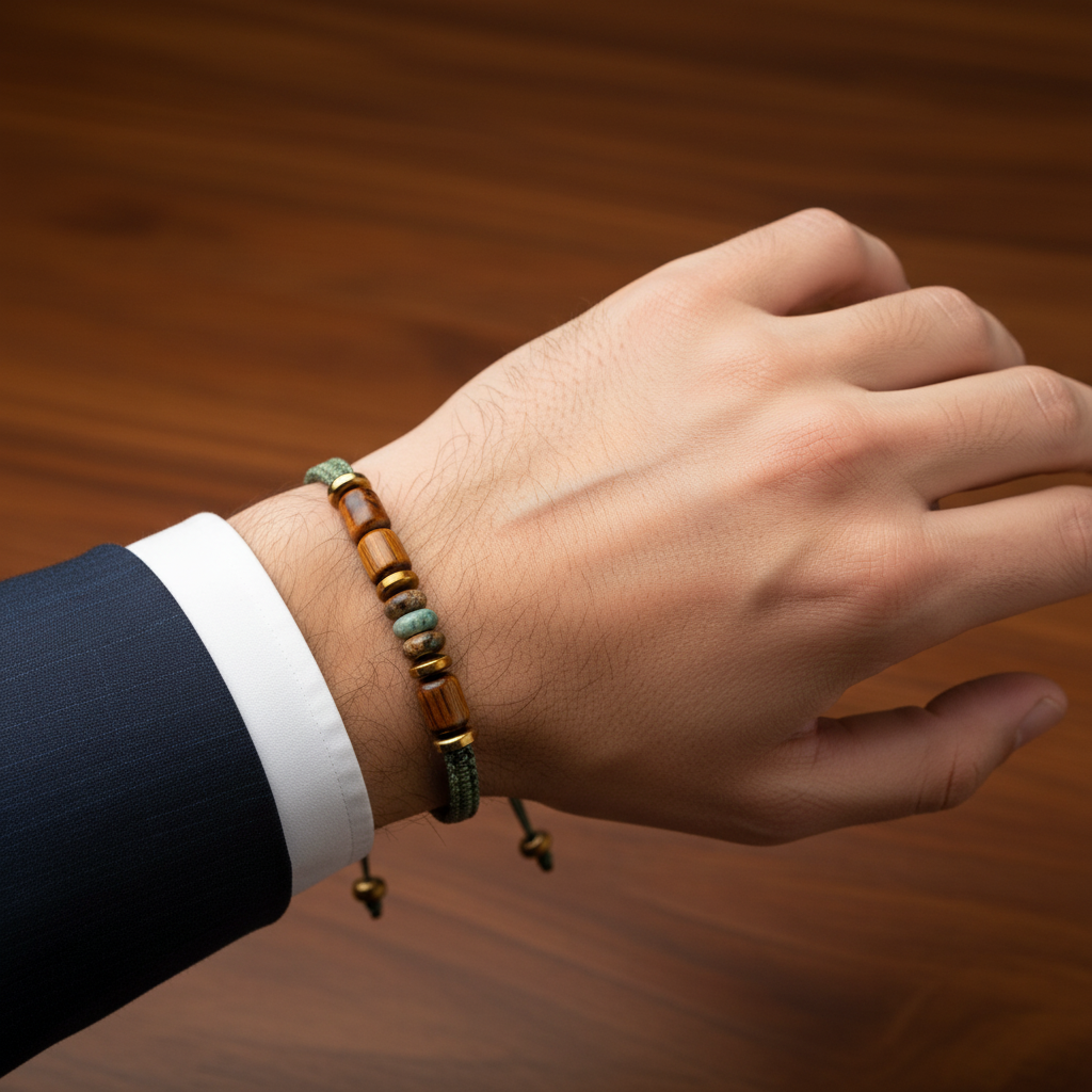 Hint Akik, Kaplan Gözü & Hematit Doğal Taş Erkek Tasarım Bileklik – Özel Tasarım