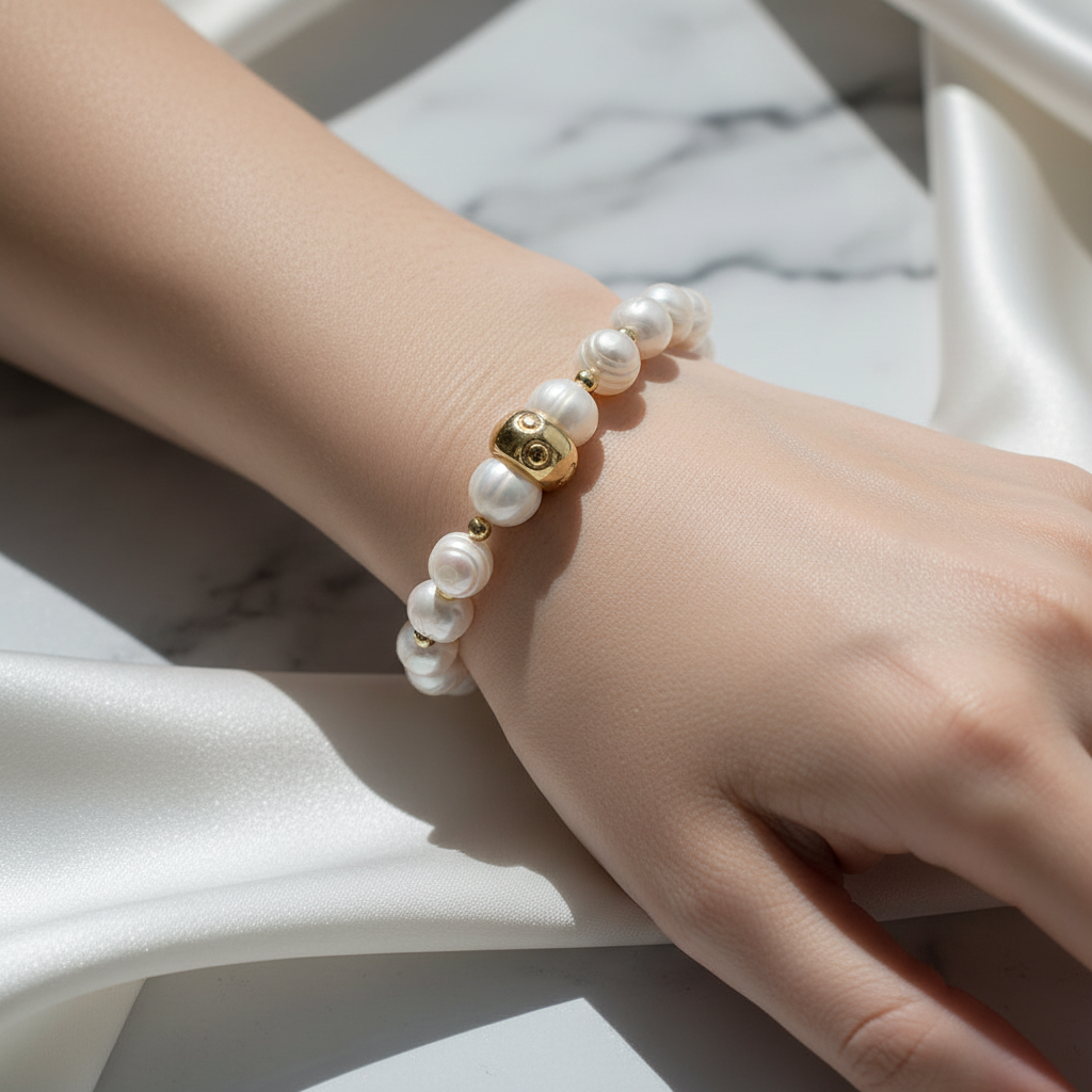 İnci Doğal Taş Bileklik – El İşçiliği, Zarif Tasarım