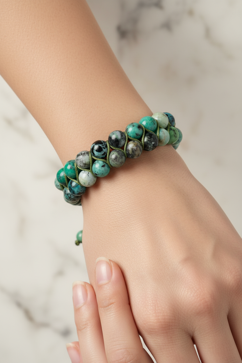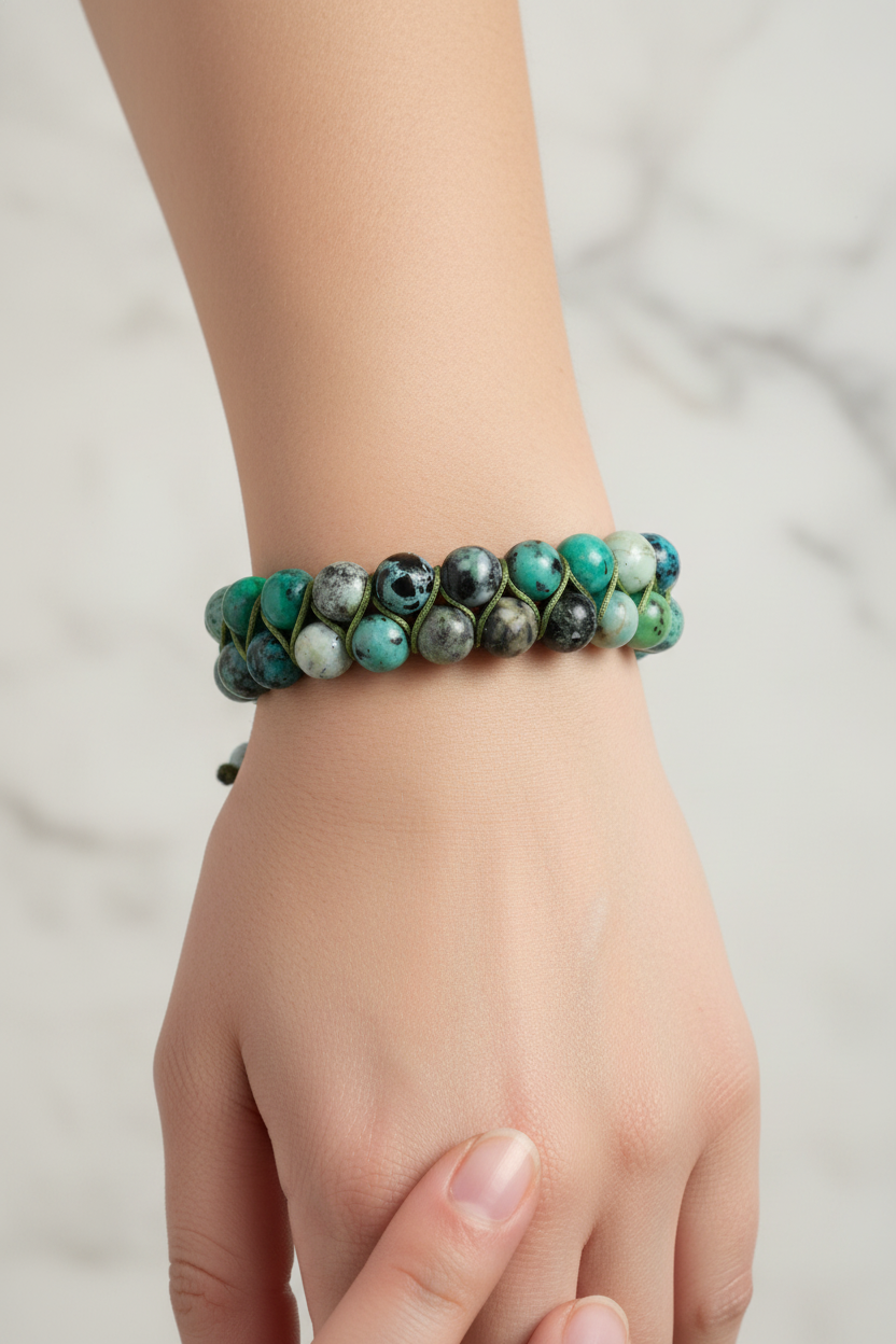 İspanyol Varisit 8mm Çift Sıra Makrome Doğal Taş Bileklik