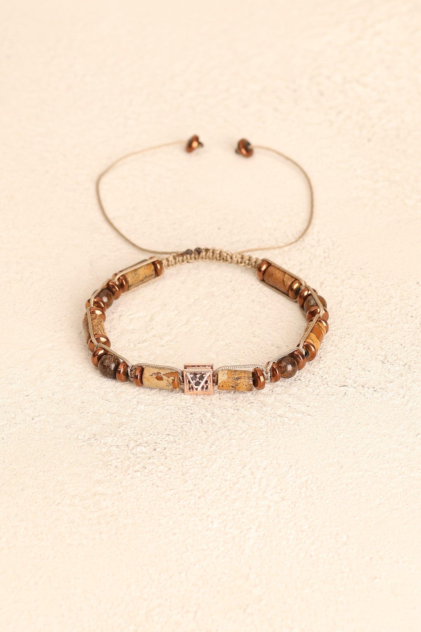 Jasper, Bronzit & Hematit Doğal Taş Makrome Bileklik | | Özel Üretim