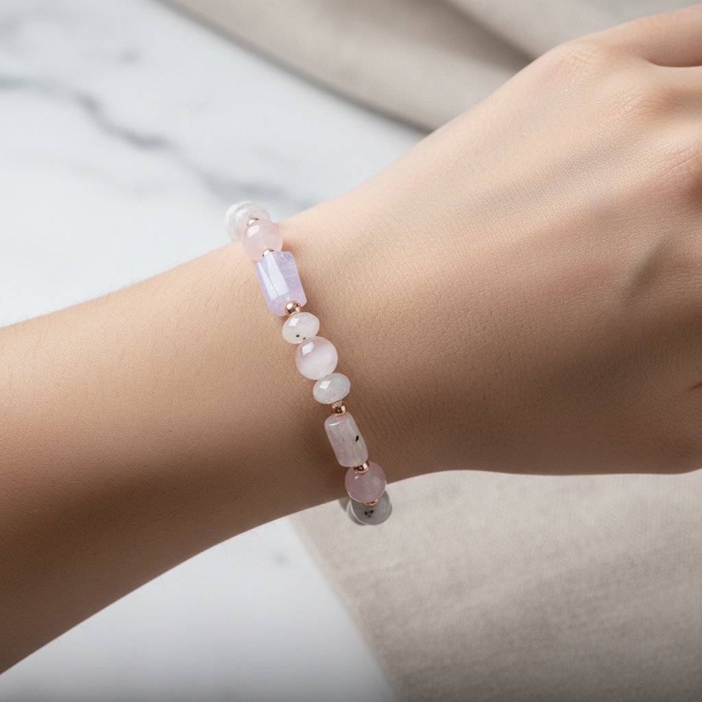 Kalsedon, Selenit, Pembe Kuvars & Ay Taşı Doğal Taş Bileklik – Özel Tasarım