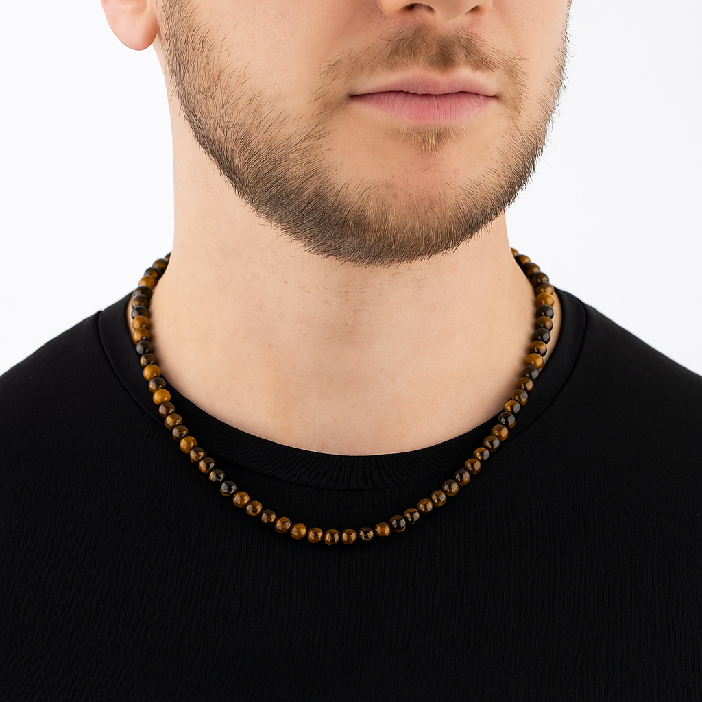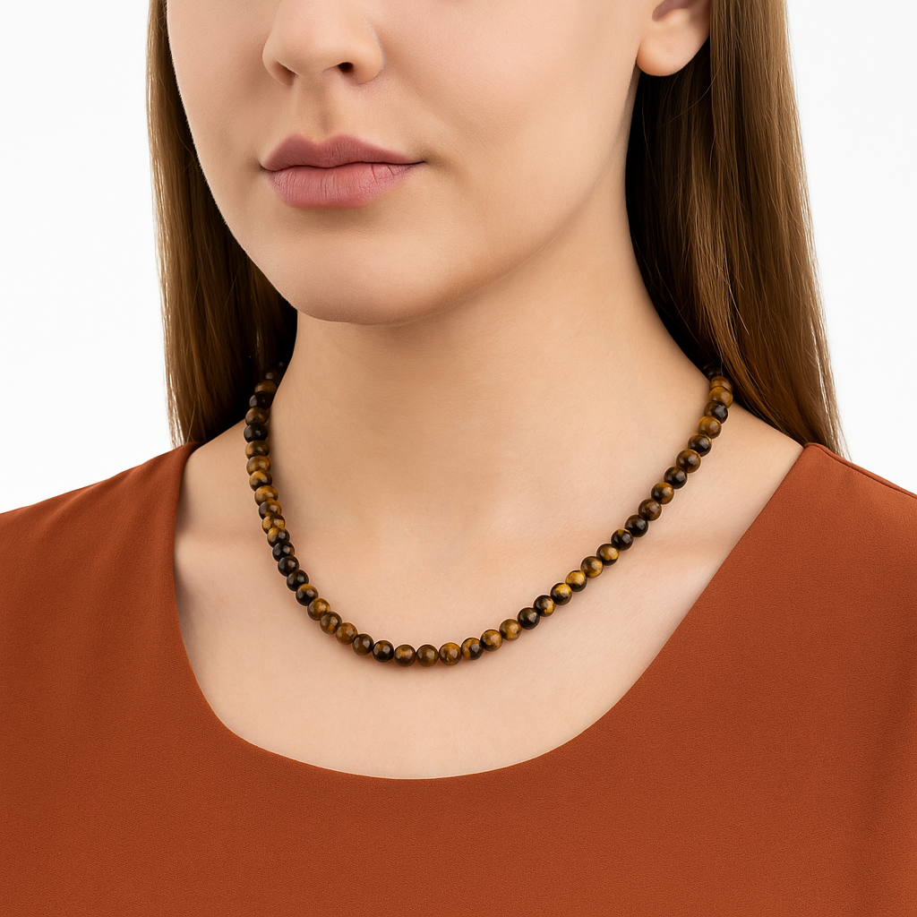 Kaplan Gözü 6 mm Dizi Doğal Taş Kolye