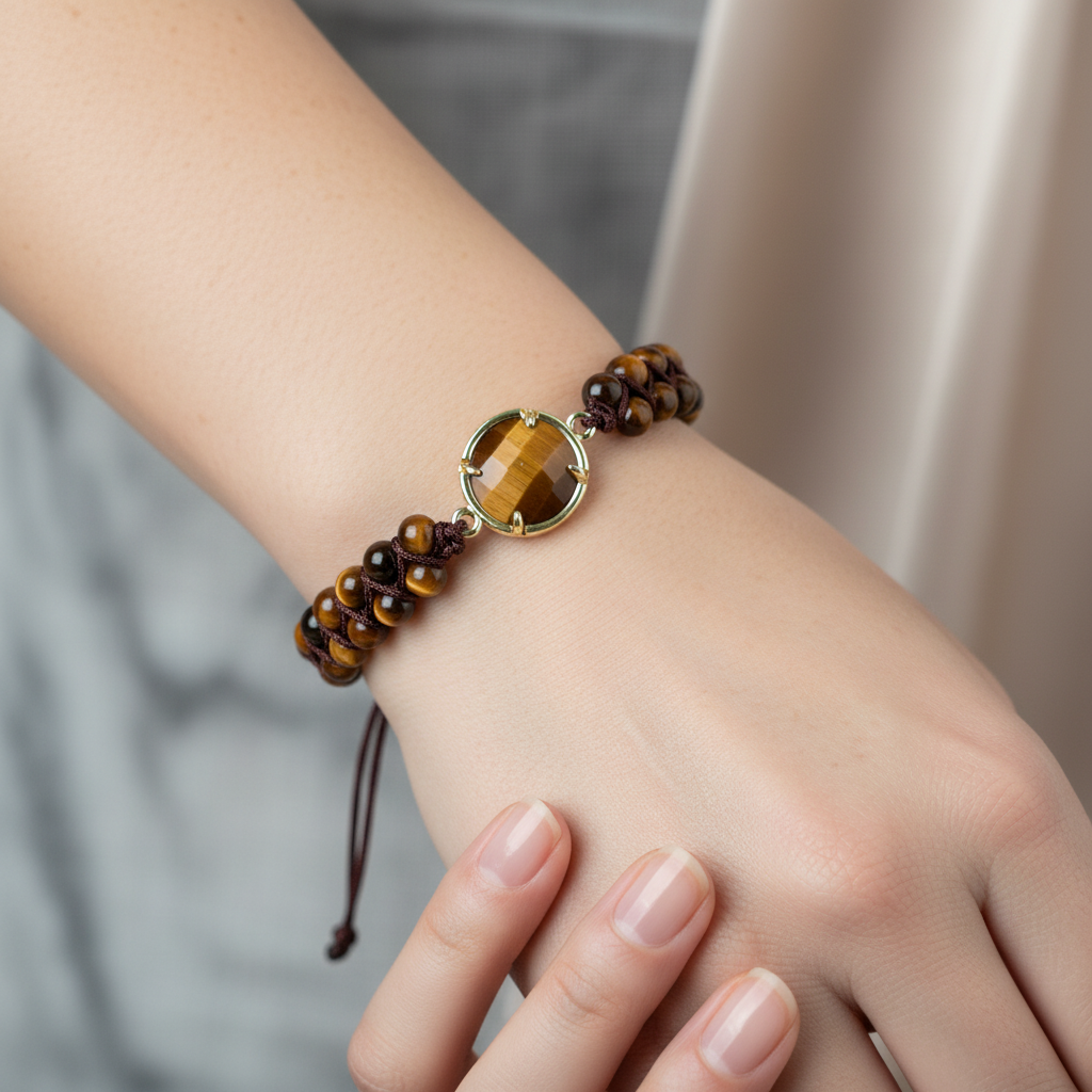 Kaplan Gözü Doğal Taş Makrome Bileklik – Özel Tasarım