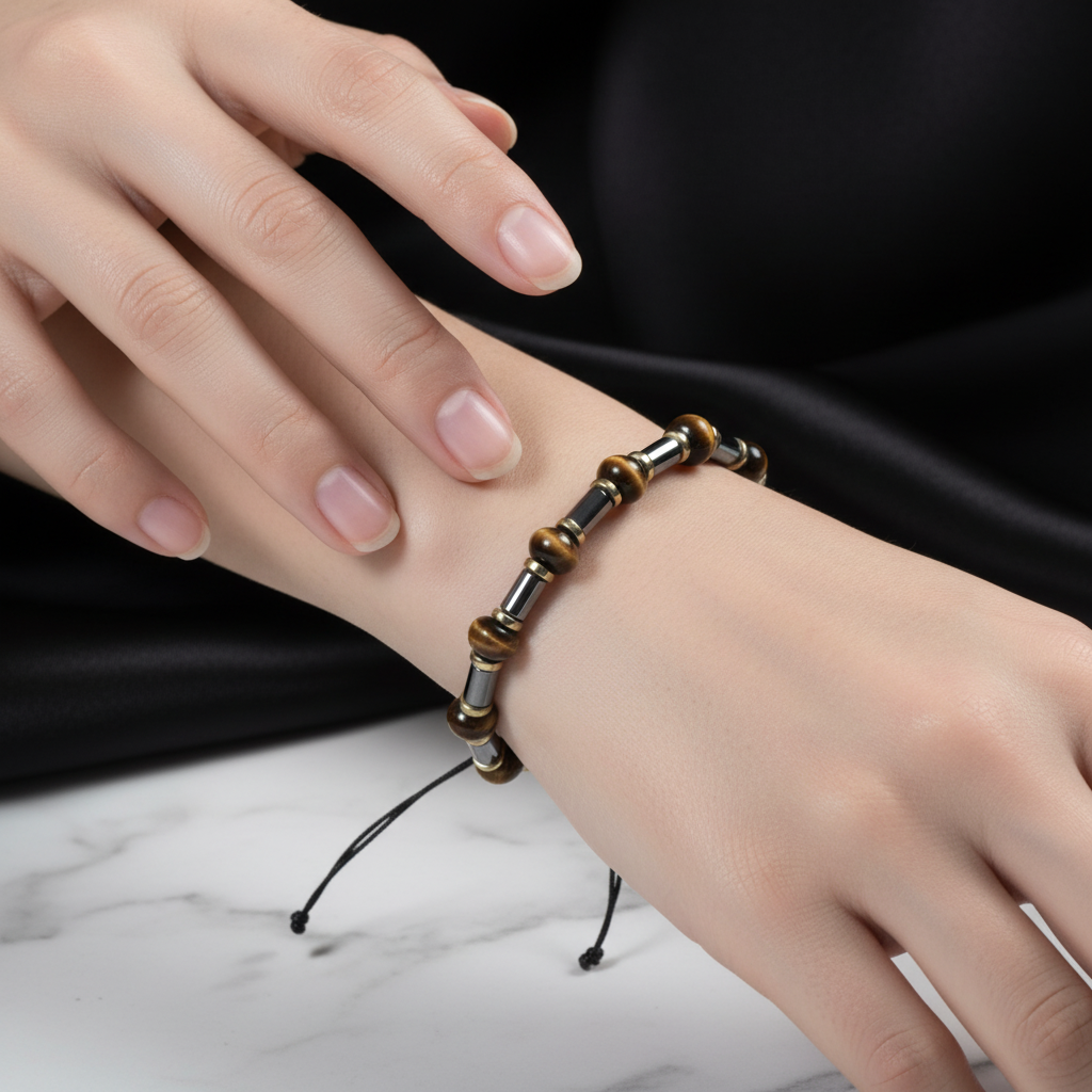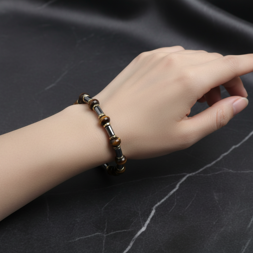 Kaplan Gözü ve Hematit Doğal Taş Bileklik – Unisex Şık Tasarım