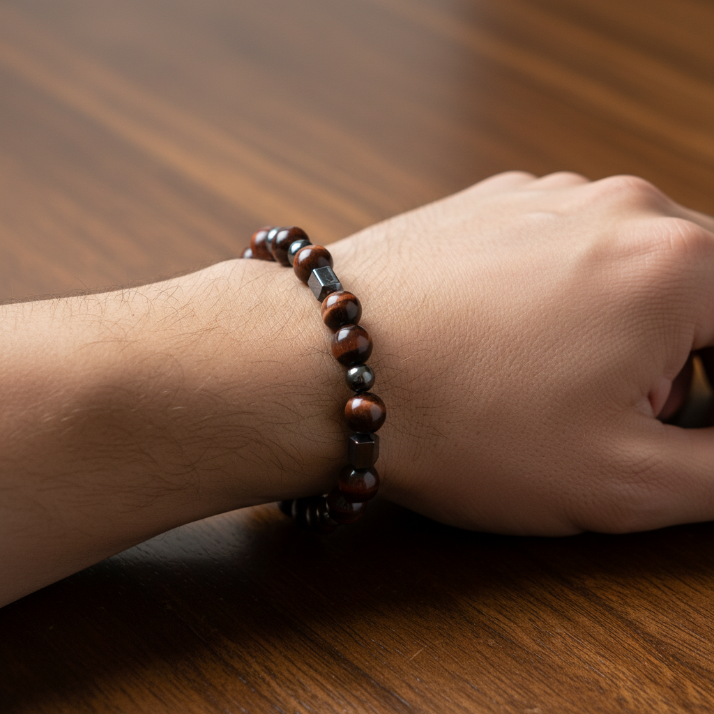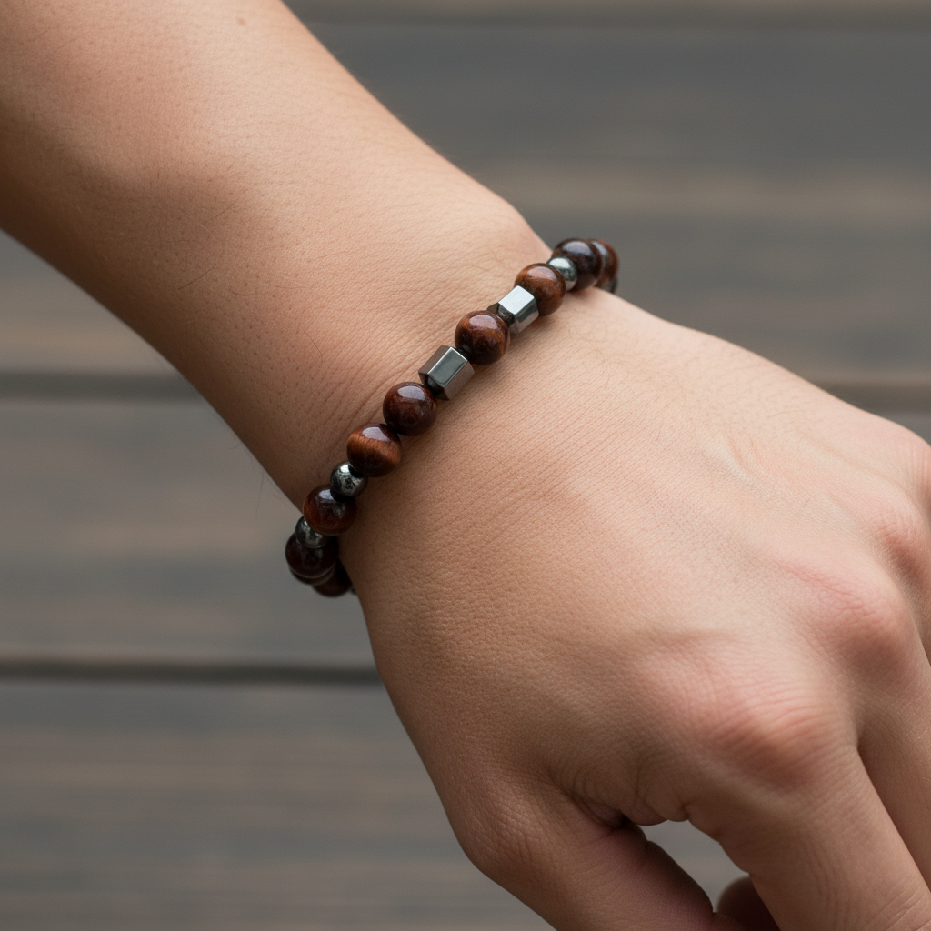 Kaplan Gözü & Hematit Doğal Taş Erkek Bileklik – Özel Tasarım