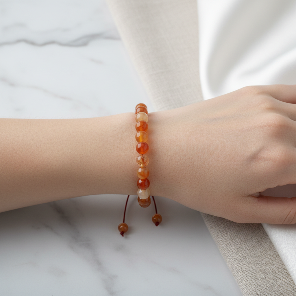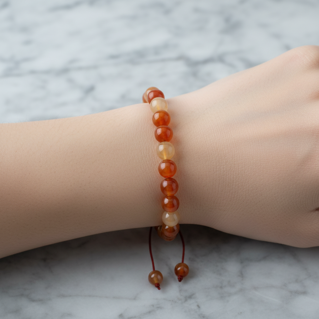 Karnelyan Akik 8 mm Merdiven Kapama Doğal Taş Bileklik – El İşçiliği