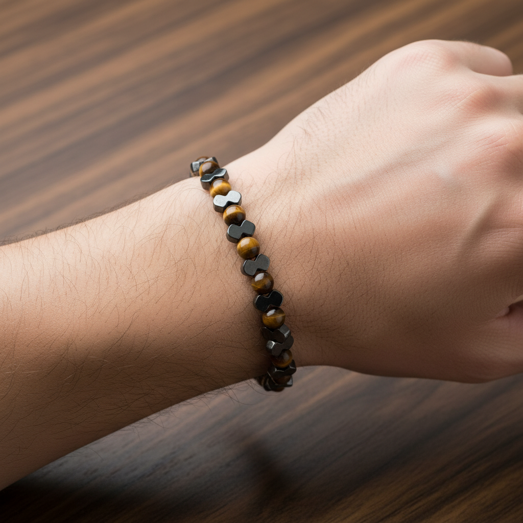 Kaplan Gözü & Hematit Doğal Taş Erkek Bileklik – El İşçiliği