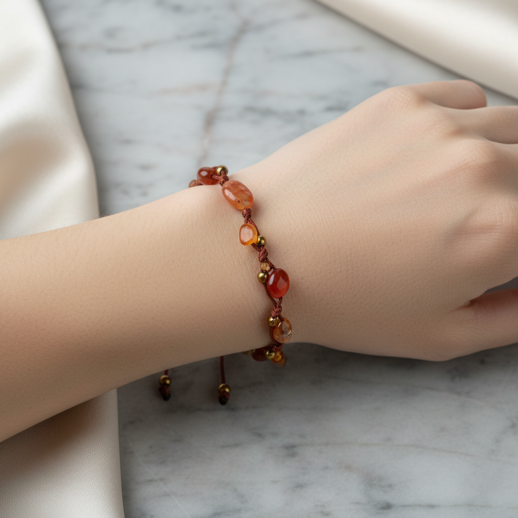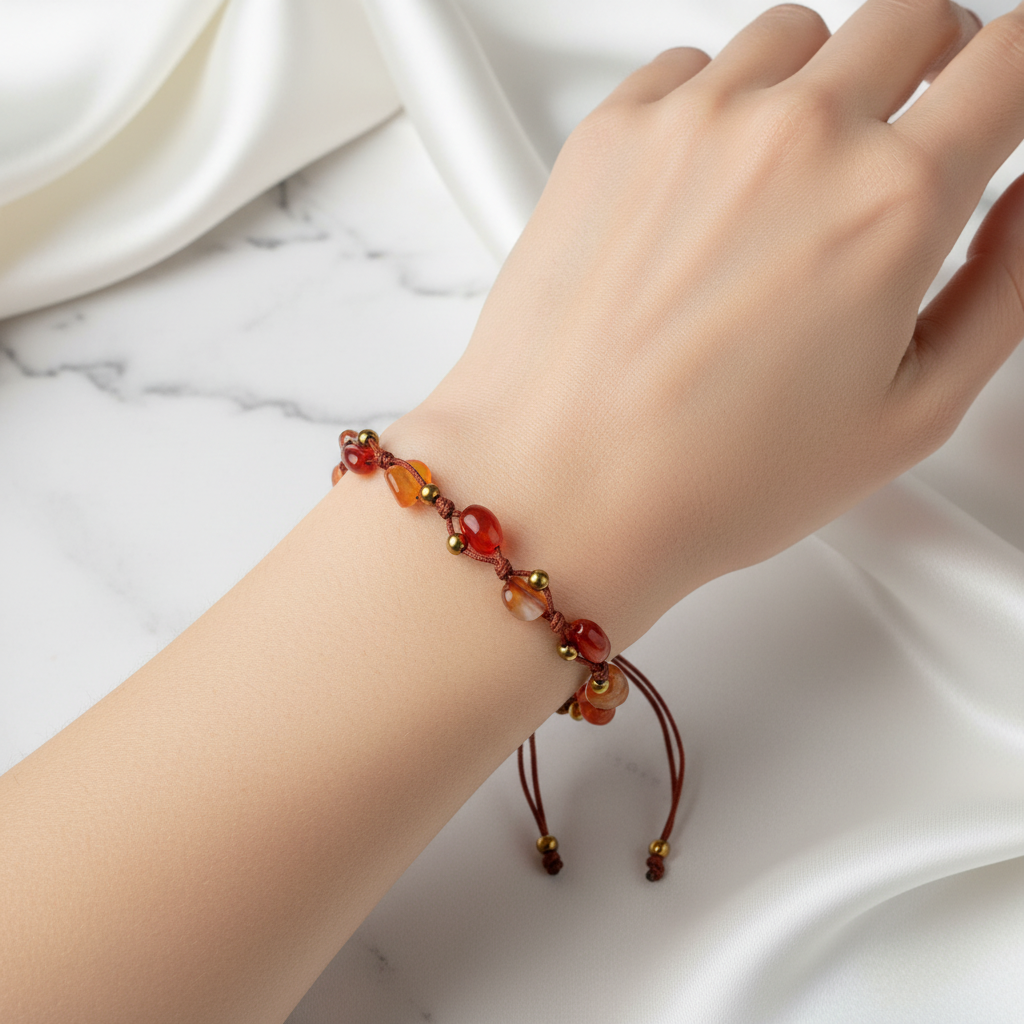 Kırmızı Akik Natürel Kesim Doğal Taş Makrome Bileklik – Unisex El İşçiliği