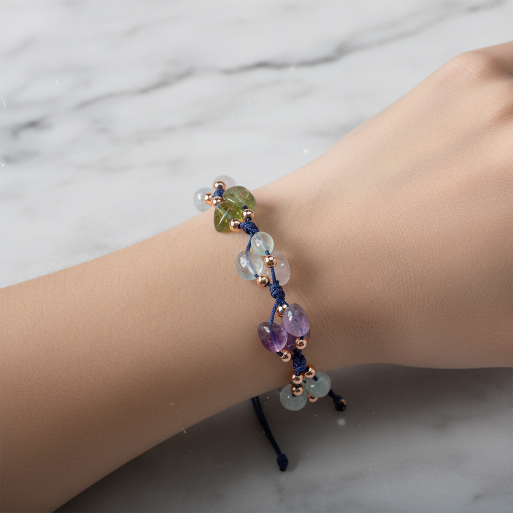 Kova Burcu Doğal Taş Makrome Bileklik – Akuamarin, Ametist, Ay Taşı, Kalsedon, Labradorit, Mor Florit, Yeşim – Özel Tasarım