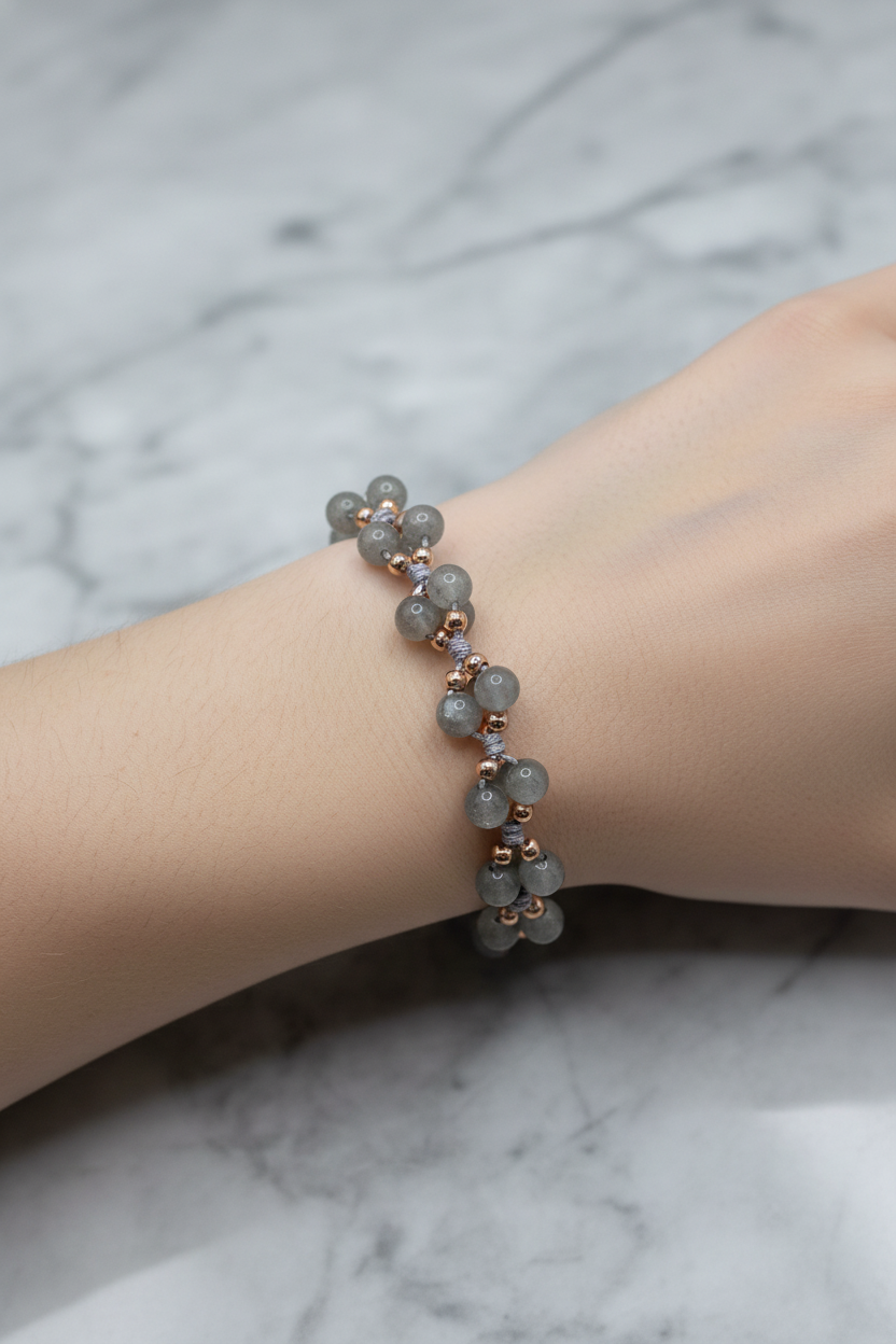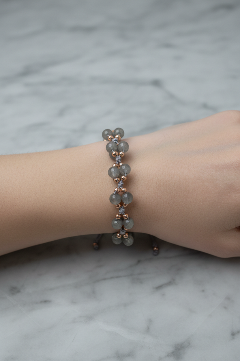 Labradorit Doğal Taş Merdiven Kapama Bileklik – Ayarlanabilir İpli Tasarım