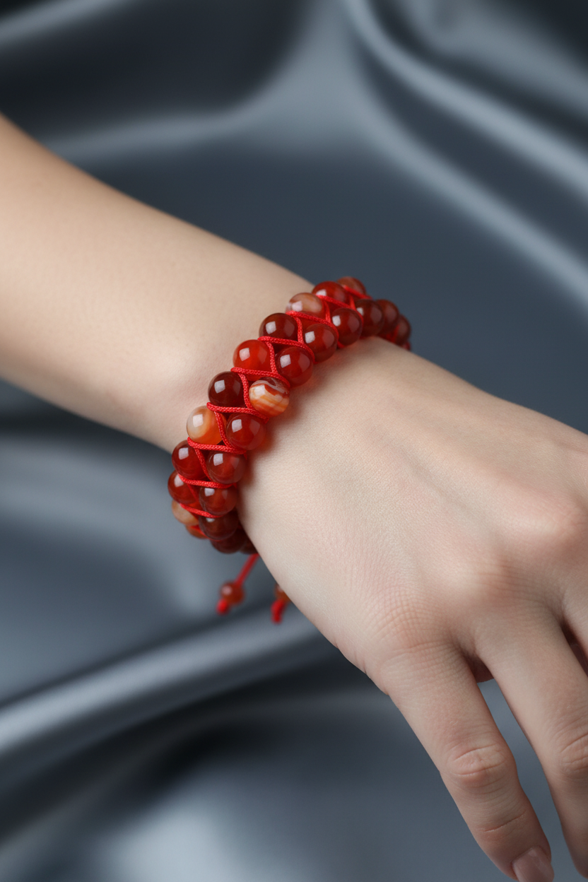 Madagaskar Akiği 8mm Çift Sıra Makrome Doğal Taş Bileklik