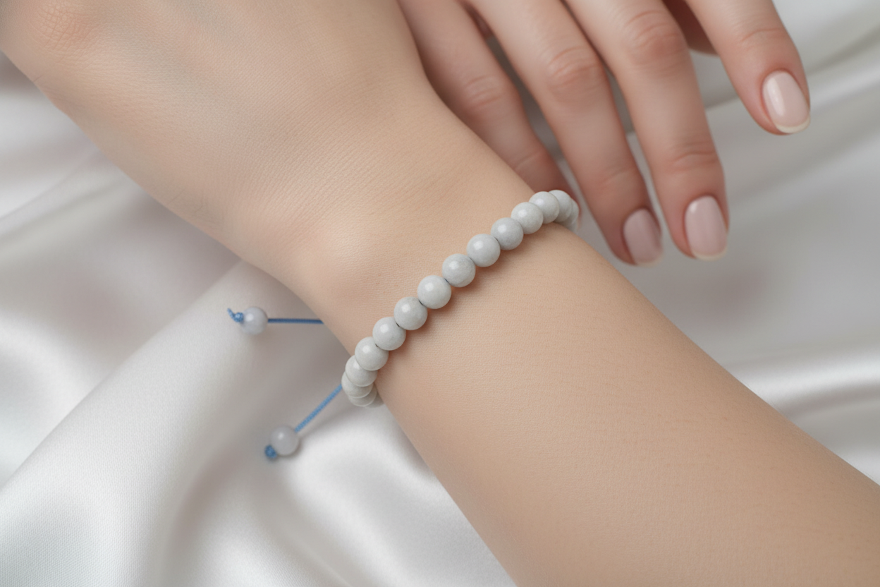 Mavi Akik 6 mm Merdiven Kapama Doğal Taş Bileklik – El İşçiliği