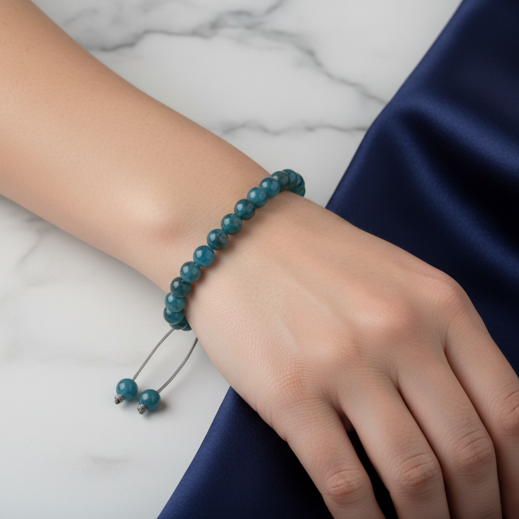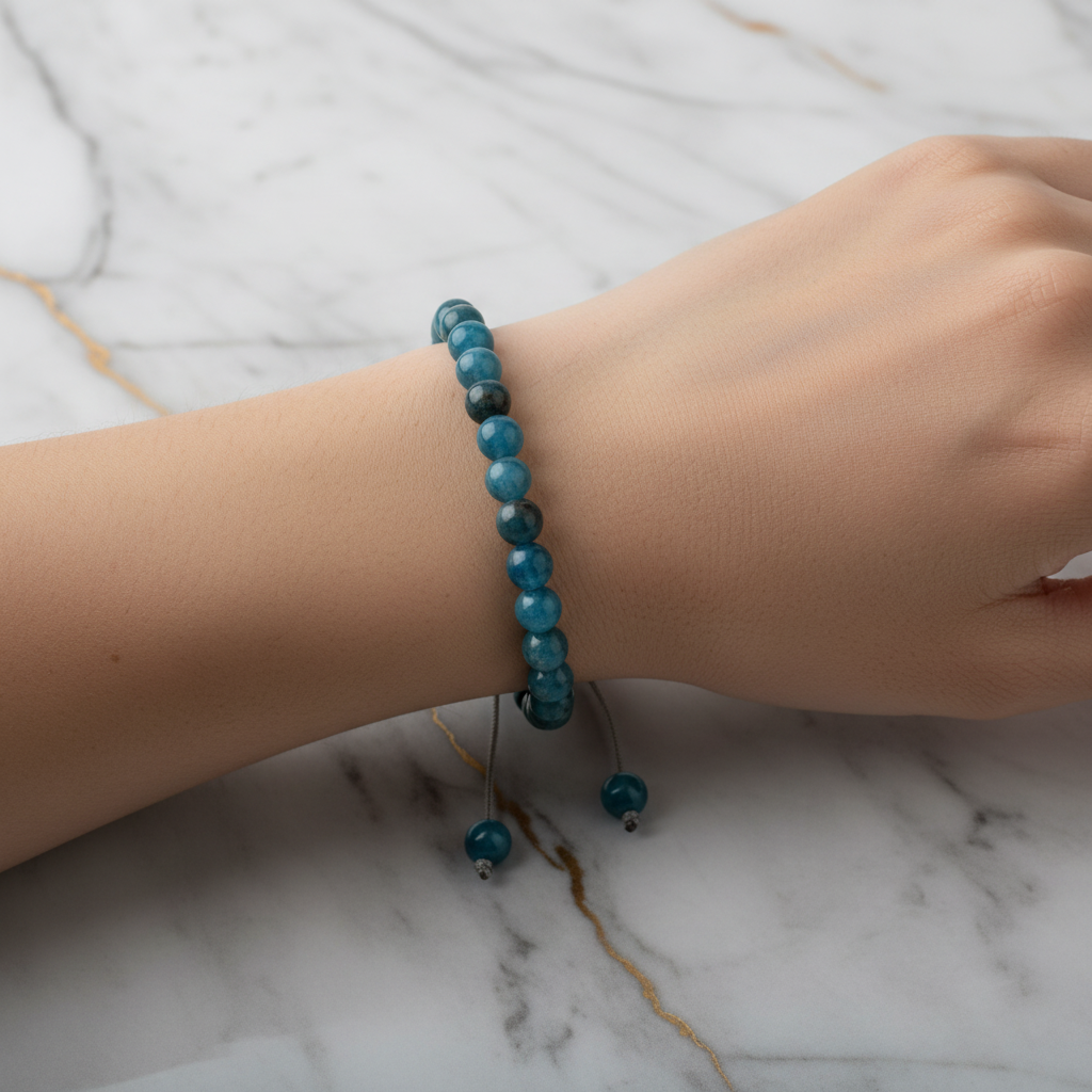 Mavi Apatit 6 mm Merdiven Kapama Doğal Taş Bileklik – El İşçiliği