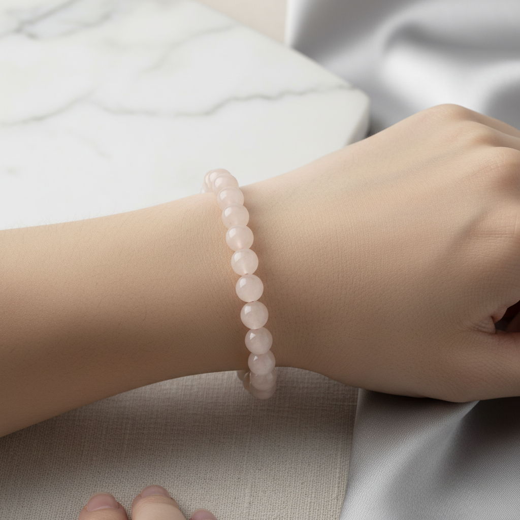 Morganit 8 mm Merdiven Kapama Doğal Taş Bileklik – El İşçiliği