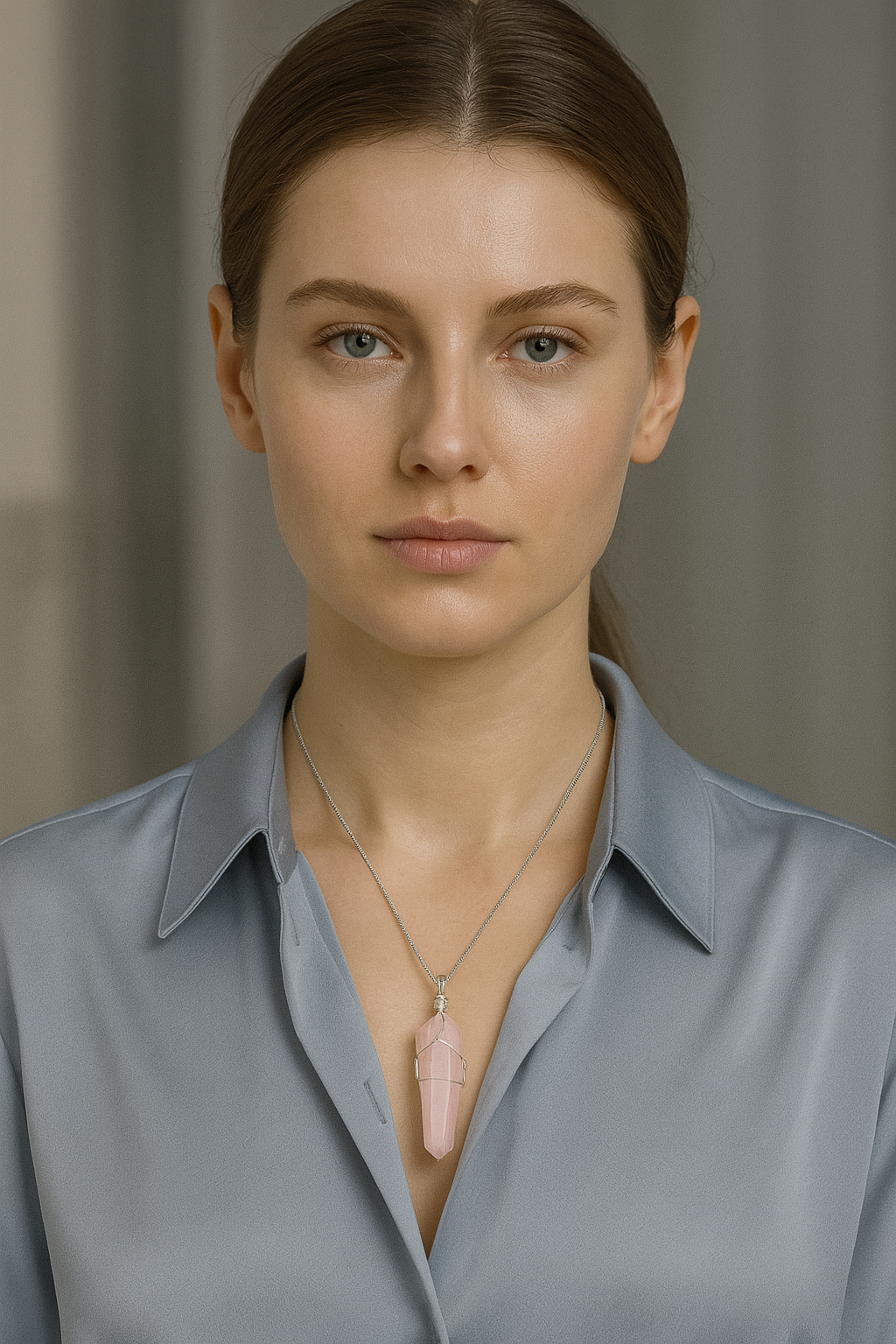 Pembe Kuvars Doğal Taş Tel Sarmalı Kolye
