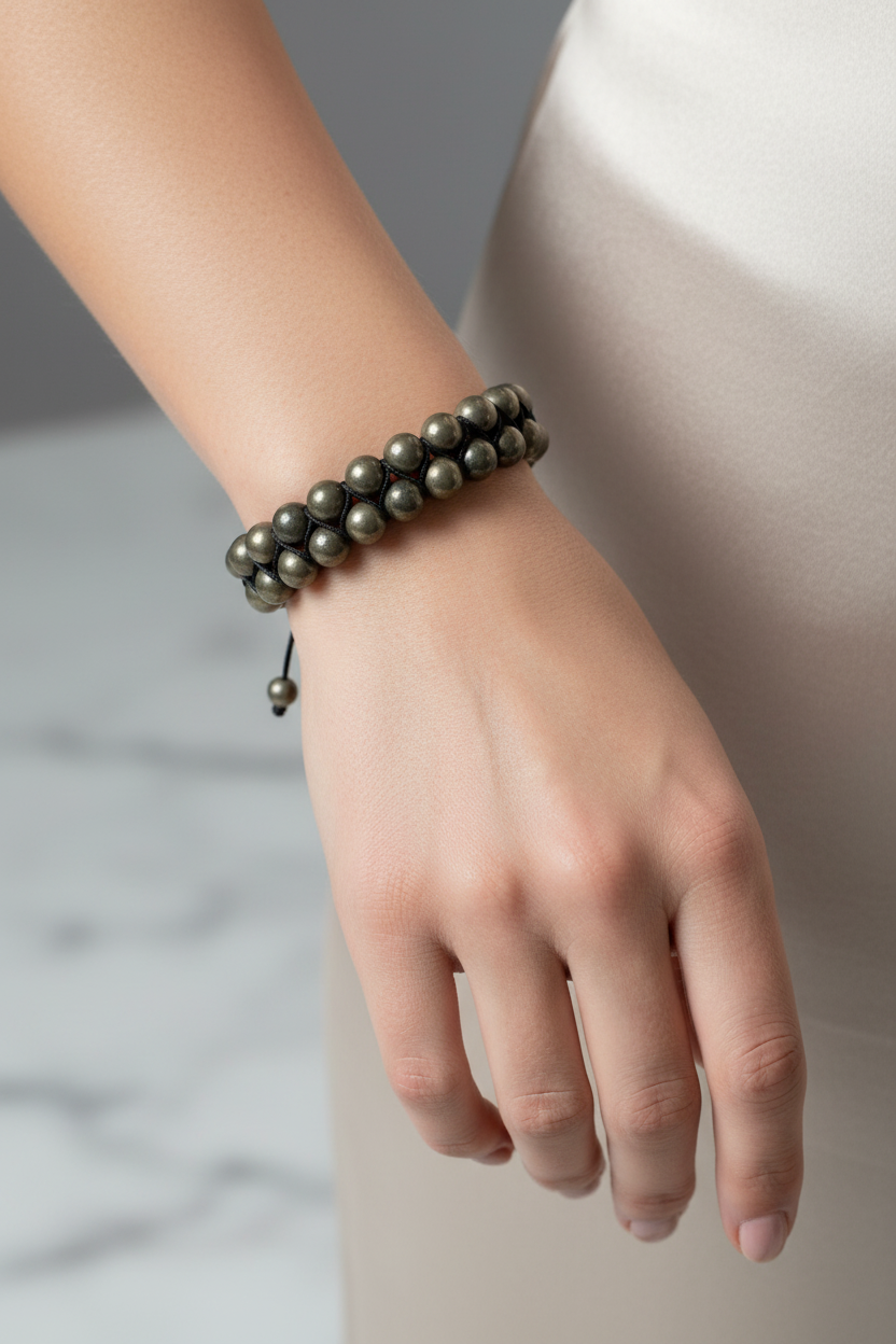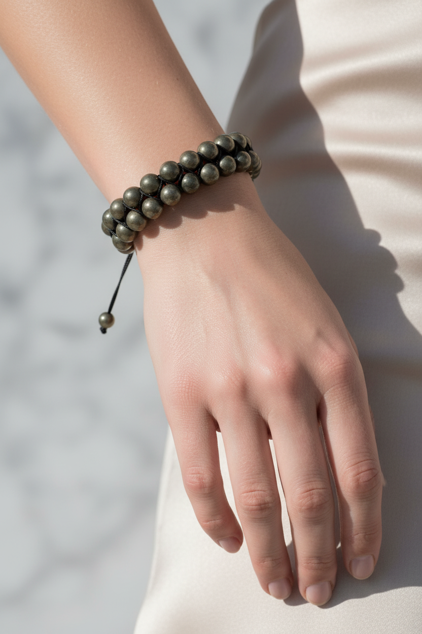 Pirit 8mm Çift Sıra Makrome Doğal Taş Bileklik