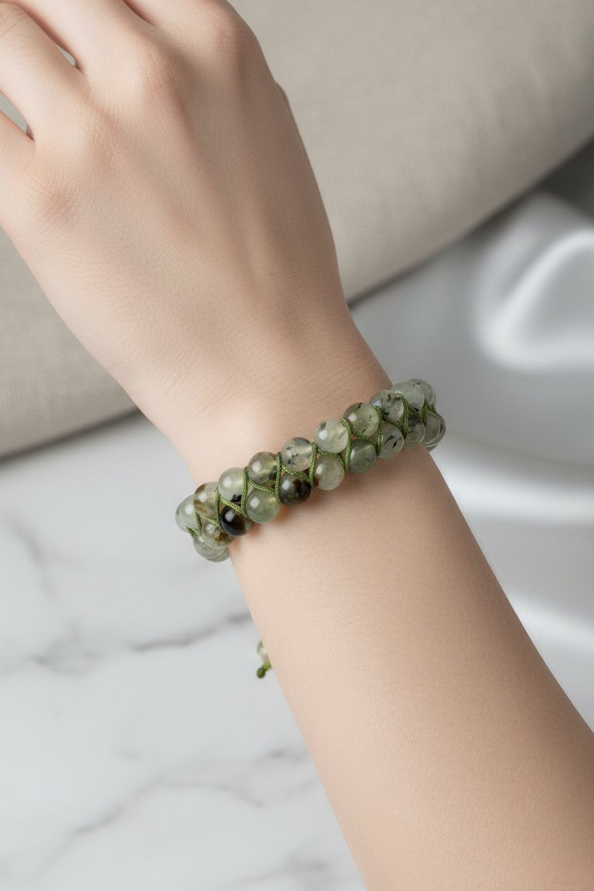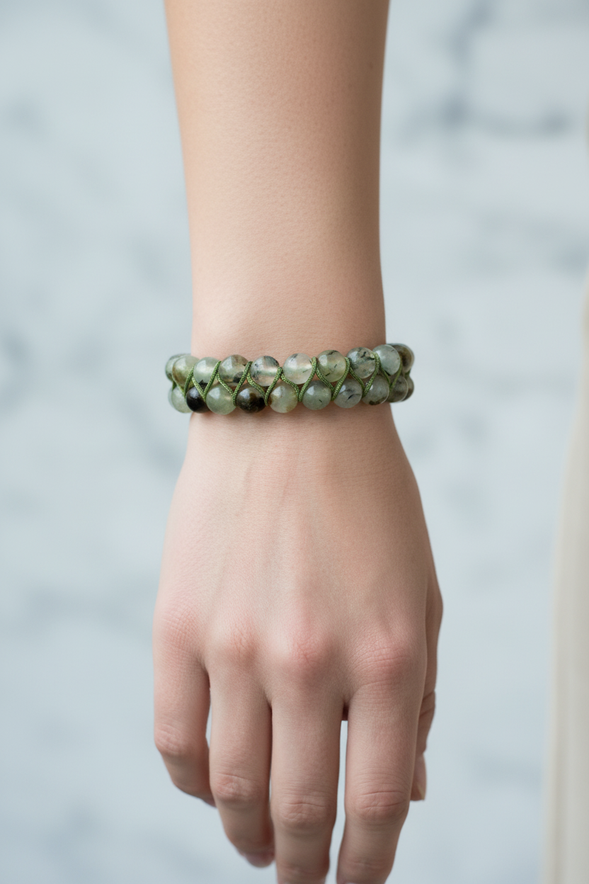 Prehnit 8mm Çift Sıra Makrome Doğal Taş Bileklik