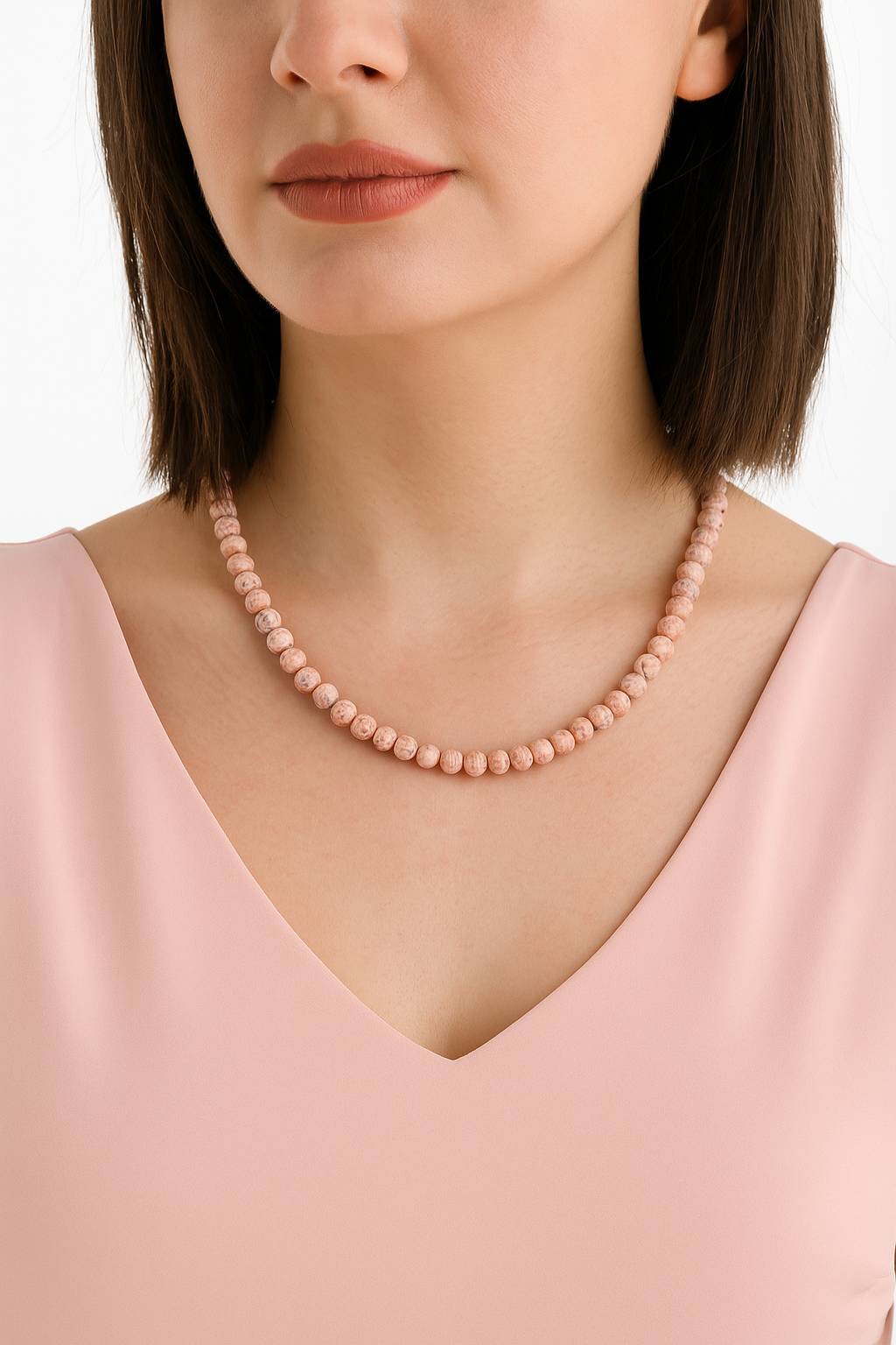 Rodokrozit 6 mm Dizi Doğal Taş Kolye