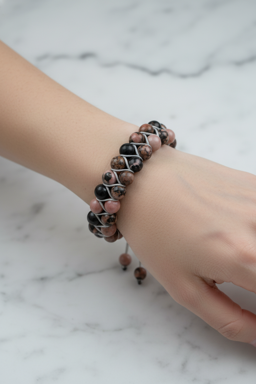 Rodonit 8mm Çift Sıra Makrome Doğal Taş Bileklik