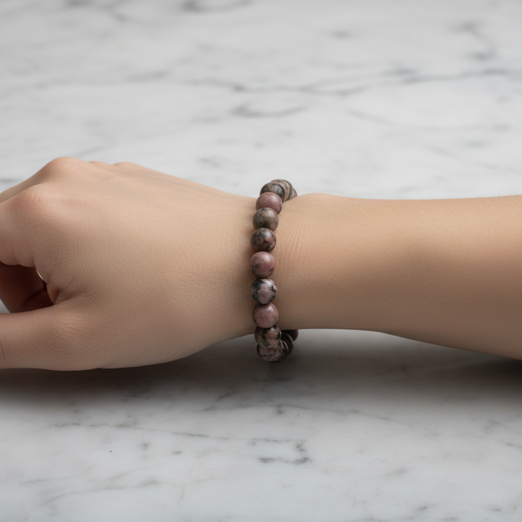 Rodonit 8 mm Merdiven Kapama Doğal Taş Bileklik – El İşçiliği